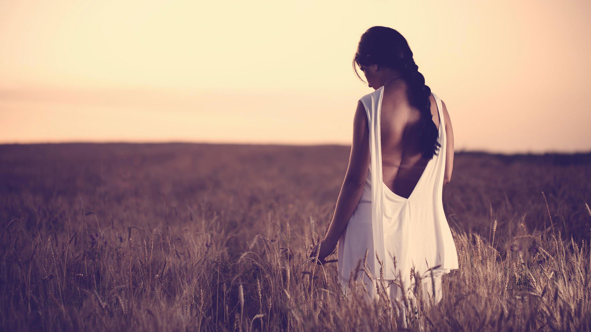 La ragazza cammina attraverso il campo con le orecchieLa ragazza cammina attraverso il campo con le orecchie