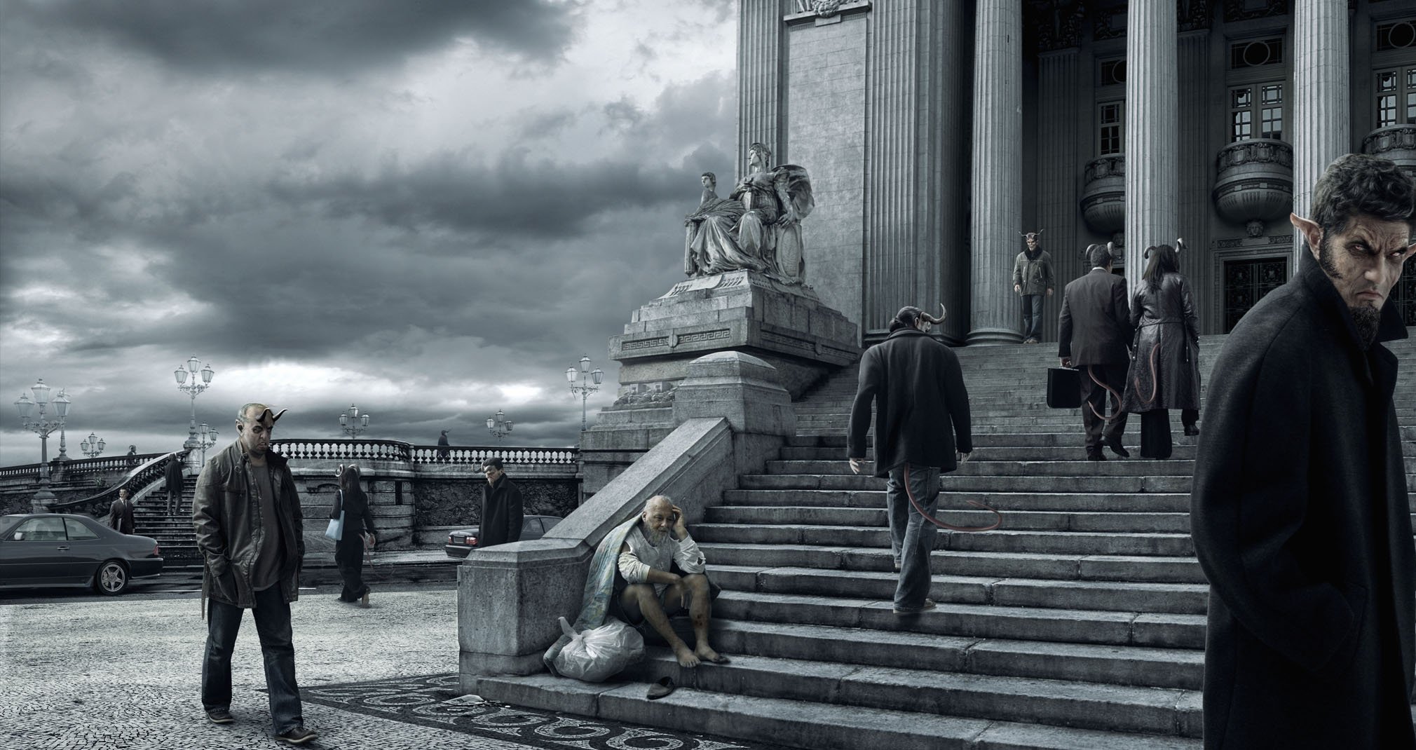 Pezzo soldo, in abiti neri trucco sul viso fuoco fuocoPezzo soldo, in abiti neri trucco sul viso fuoco fuoco