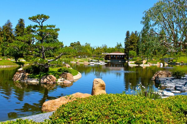 Panchine per rilassarsi vicino allo stagno