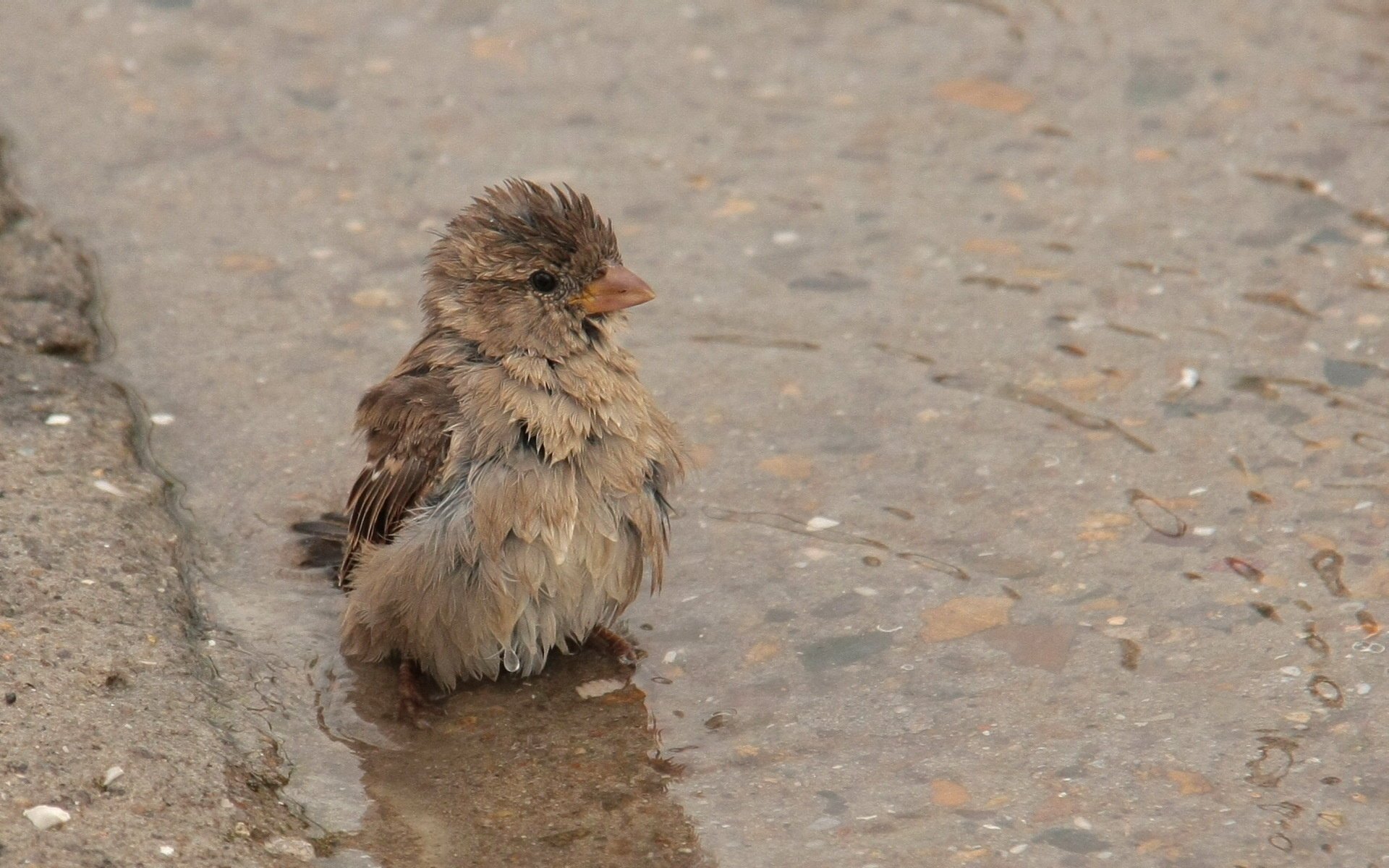 Gattino sull'asfalto in una giornata autunnale bagnataGattino sull'asfalto in una giornata autunnale bagnata