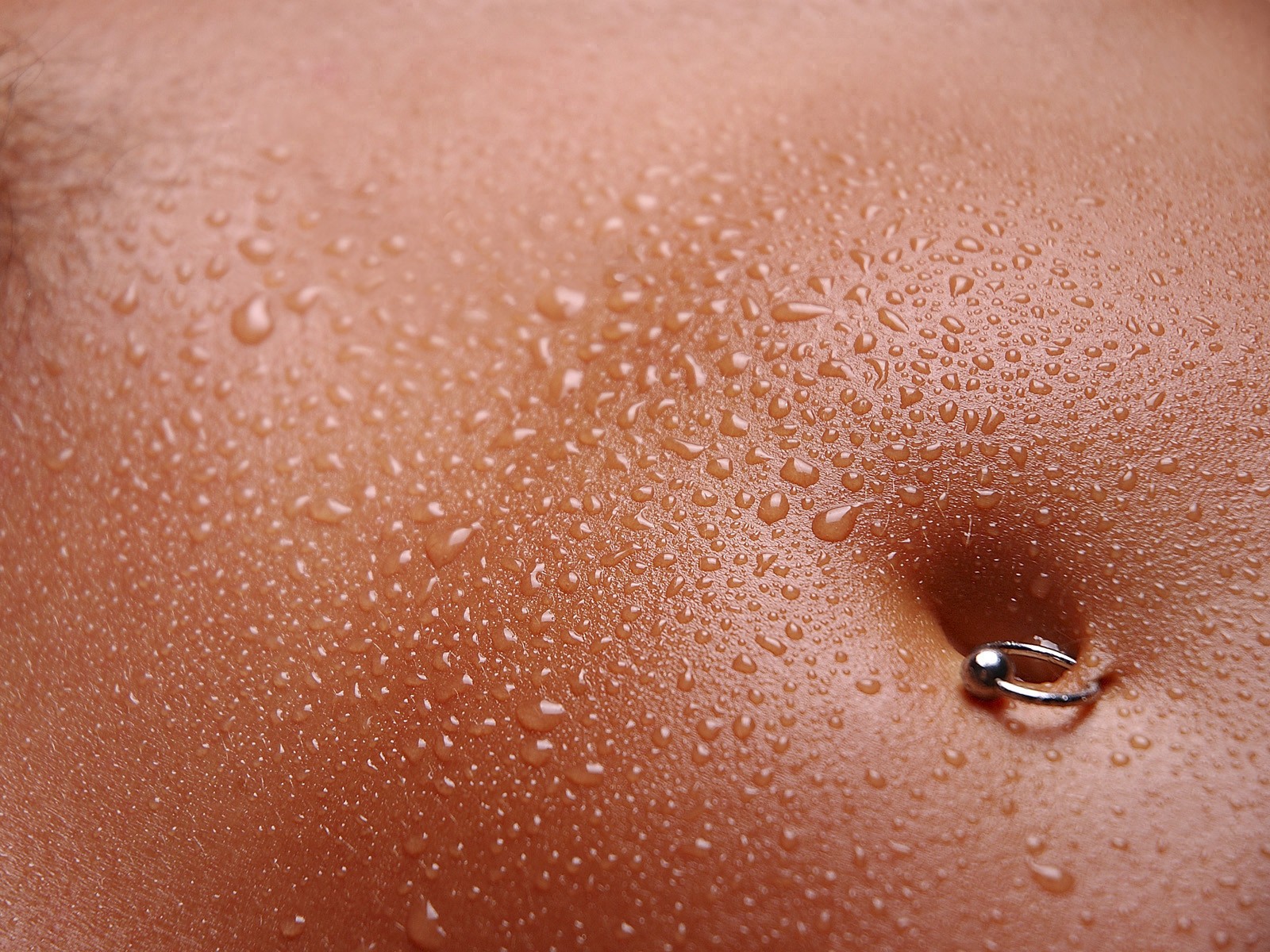 Pancia con gocce d'acqua e con un orecchino sull'ombelicoPancia con gocce d'acqua e con un orecchino sull'ombelico