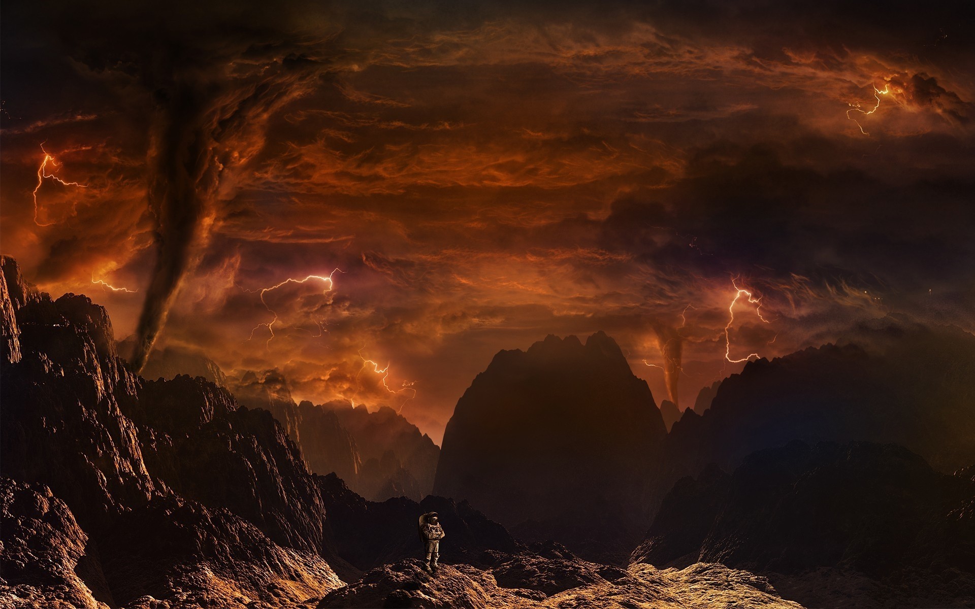 Misterioso pianeta spaziale con temporali e uraganiMisterioso pianeta spaziale con temporali e uragani