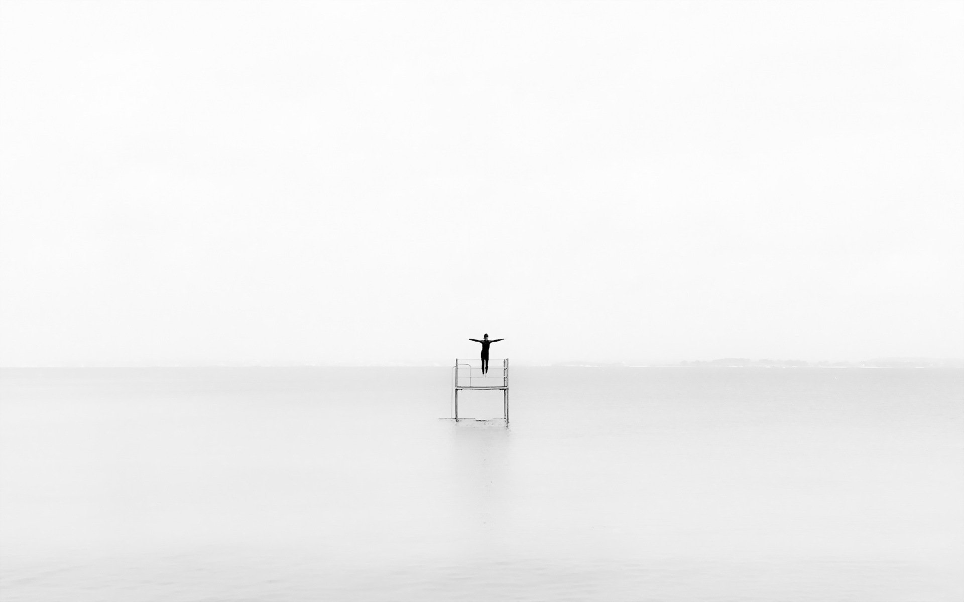 Mare calmo. Cielo nuvoloso e segno solitario