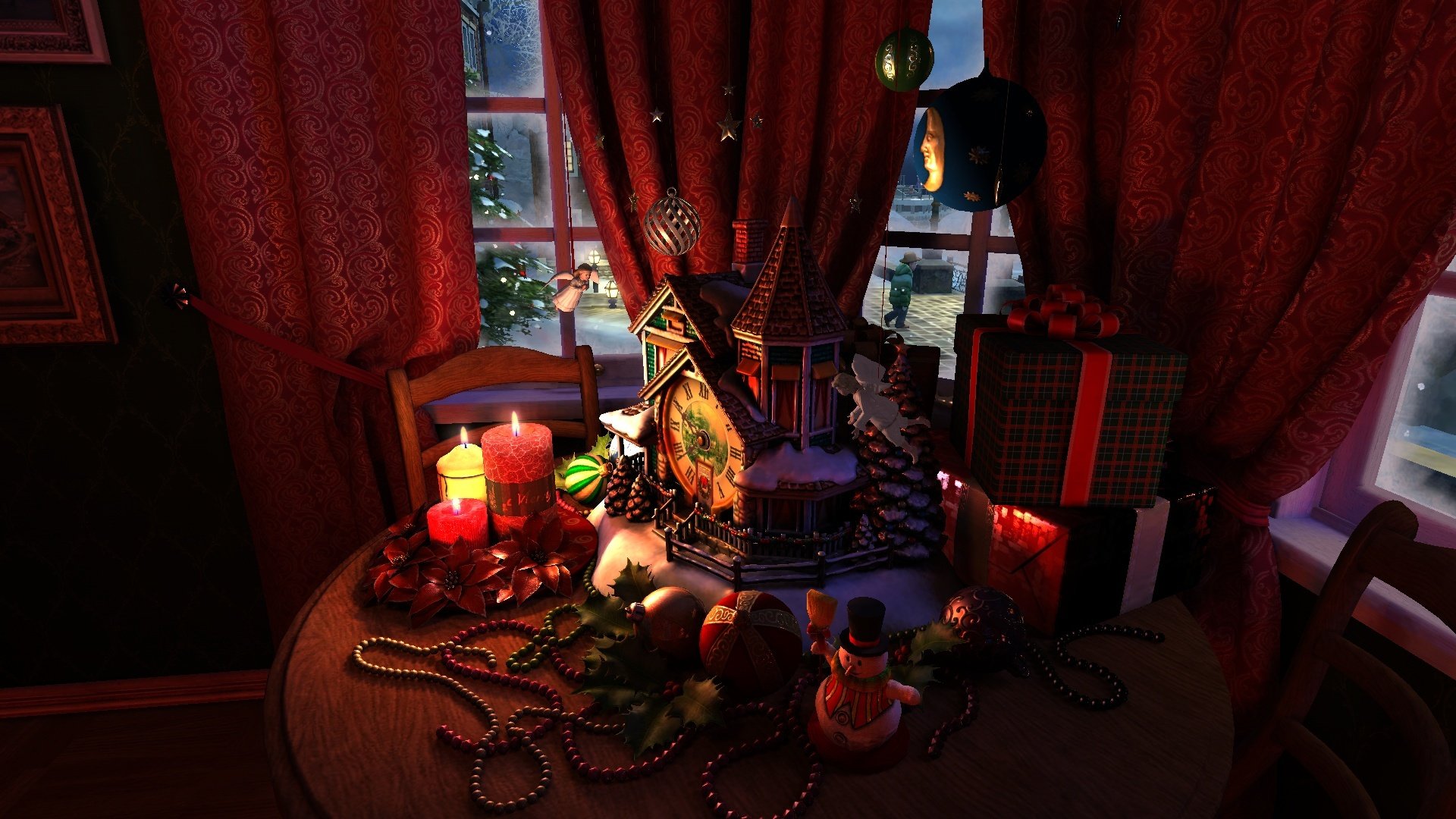 Tavolo con decorazioni e regali di Natale