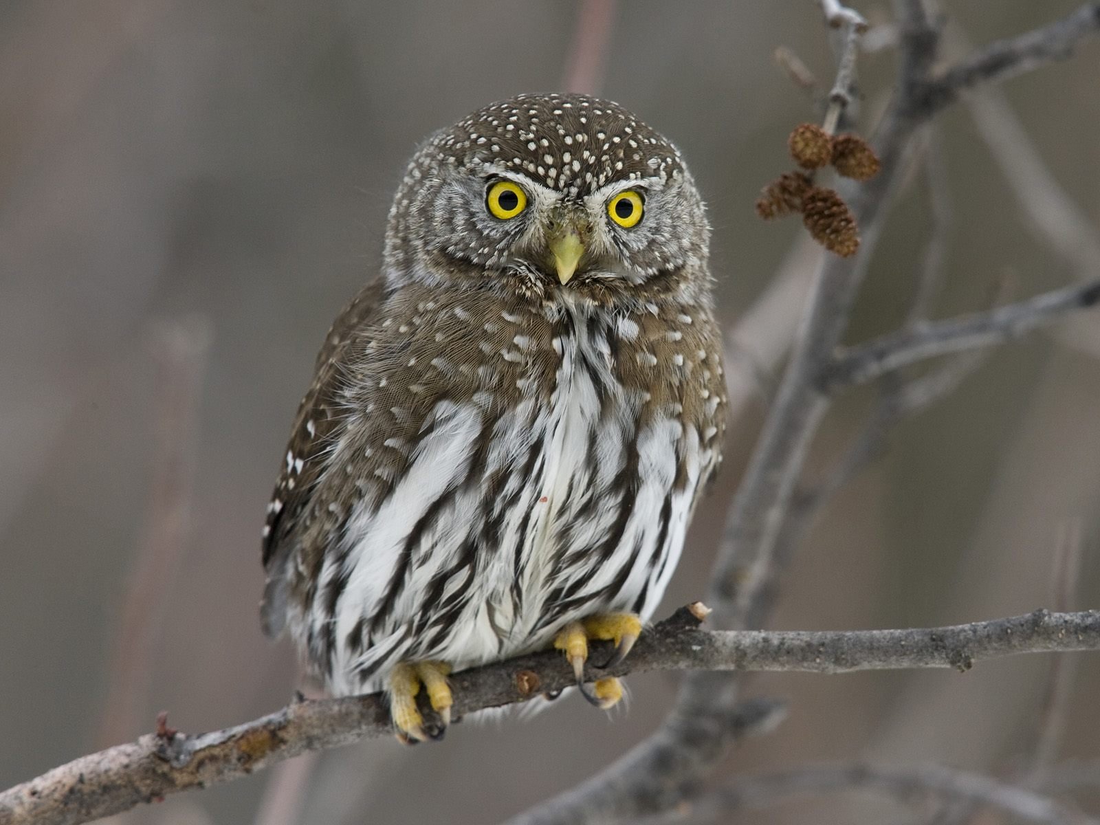 Gufo con occhi gialli luminosi che volano in invernoGufo con occhi gialli luminosi che volano in inverno