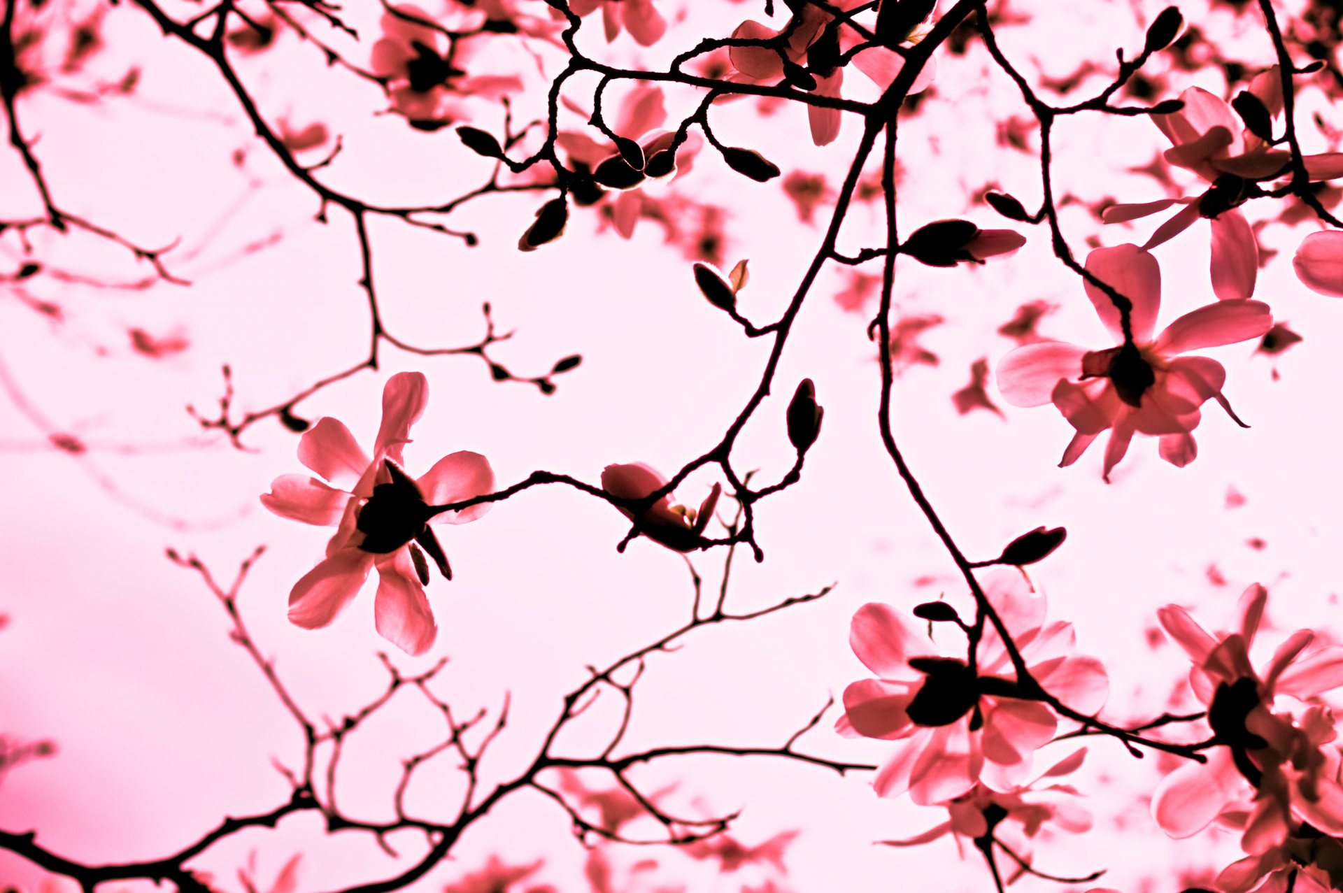 Rami di magnolia rosa in fiore