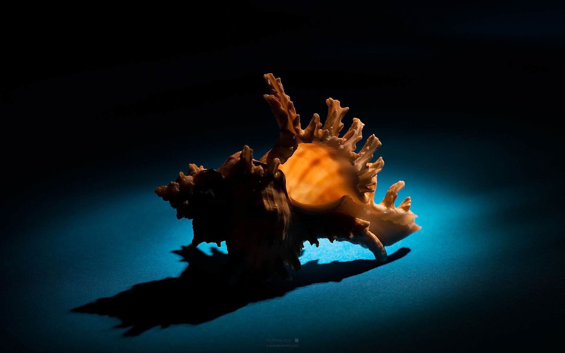 Conchiglia, su sfondo blu
