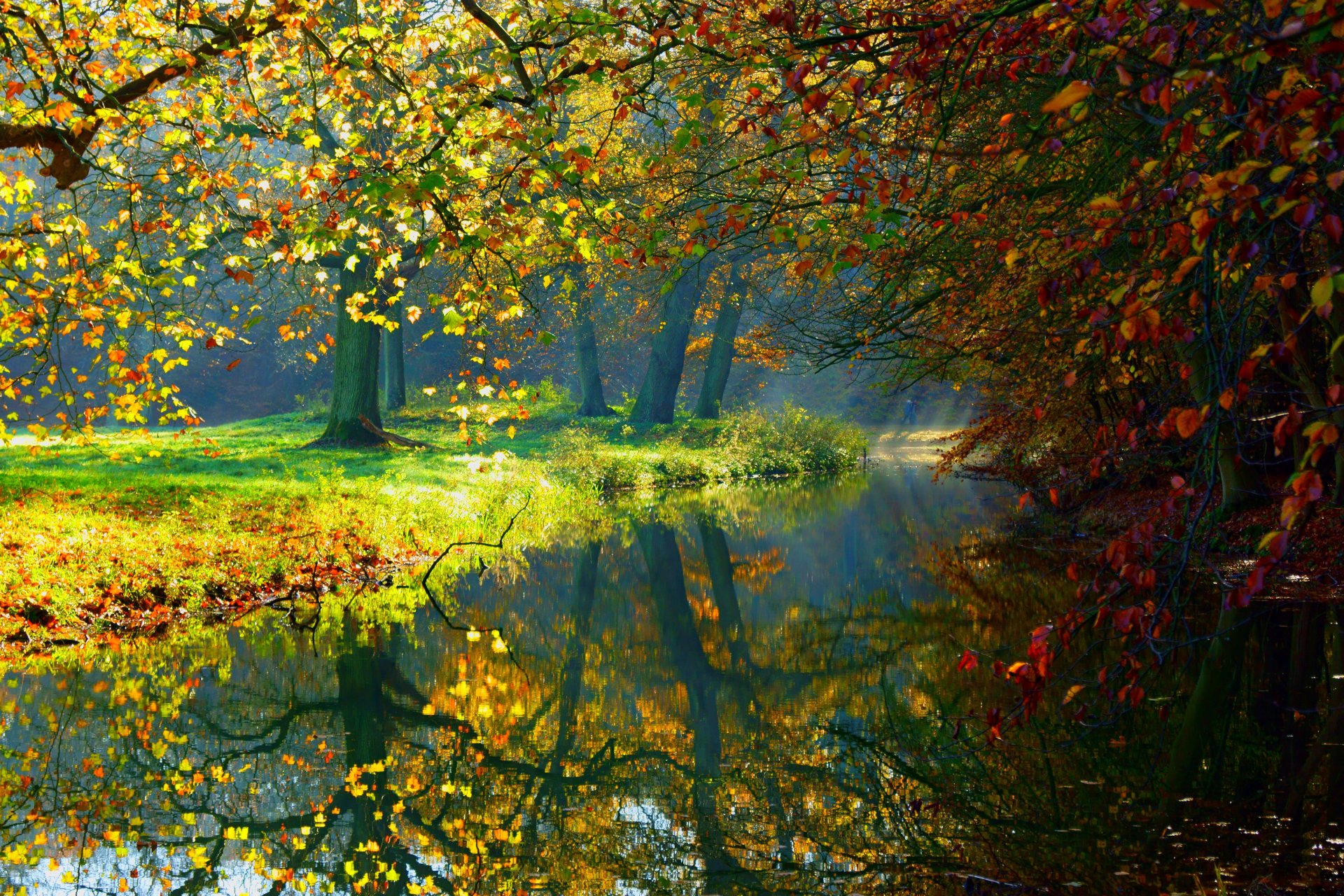 Natura autunnale con colline e stagno