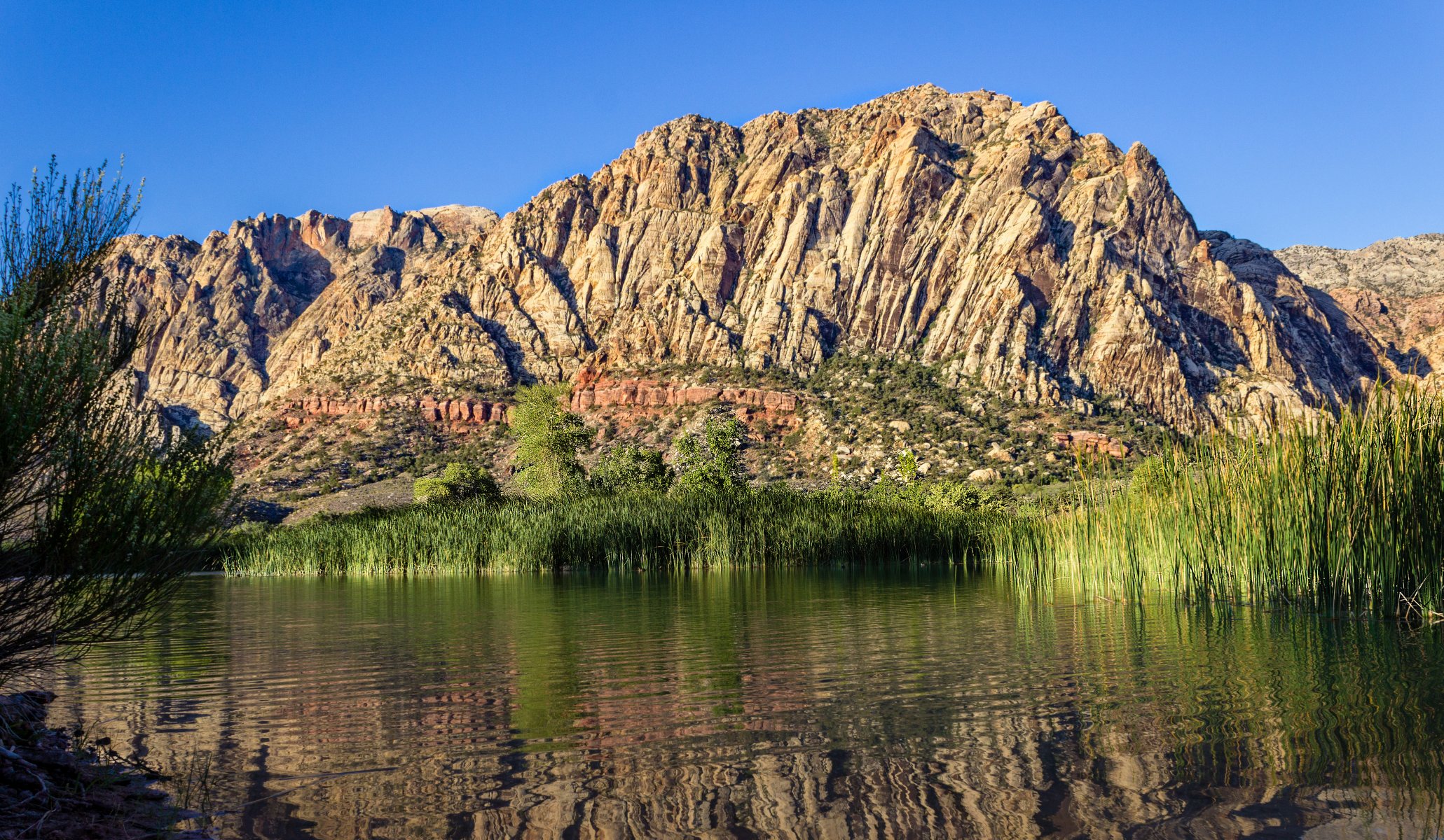 Nel lago, il riflesso dell'erba e del fianco della montagnaNel lago, il riflesso dell'erba e del fianco della montagna