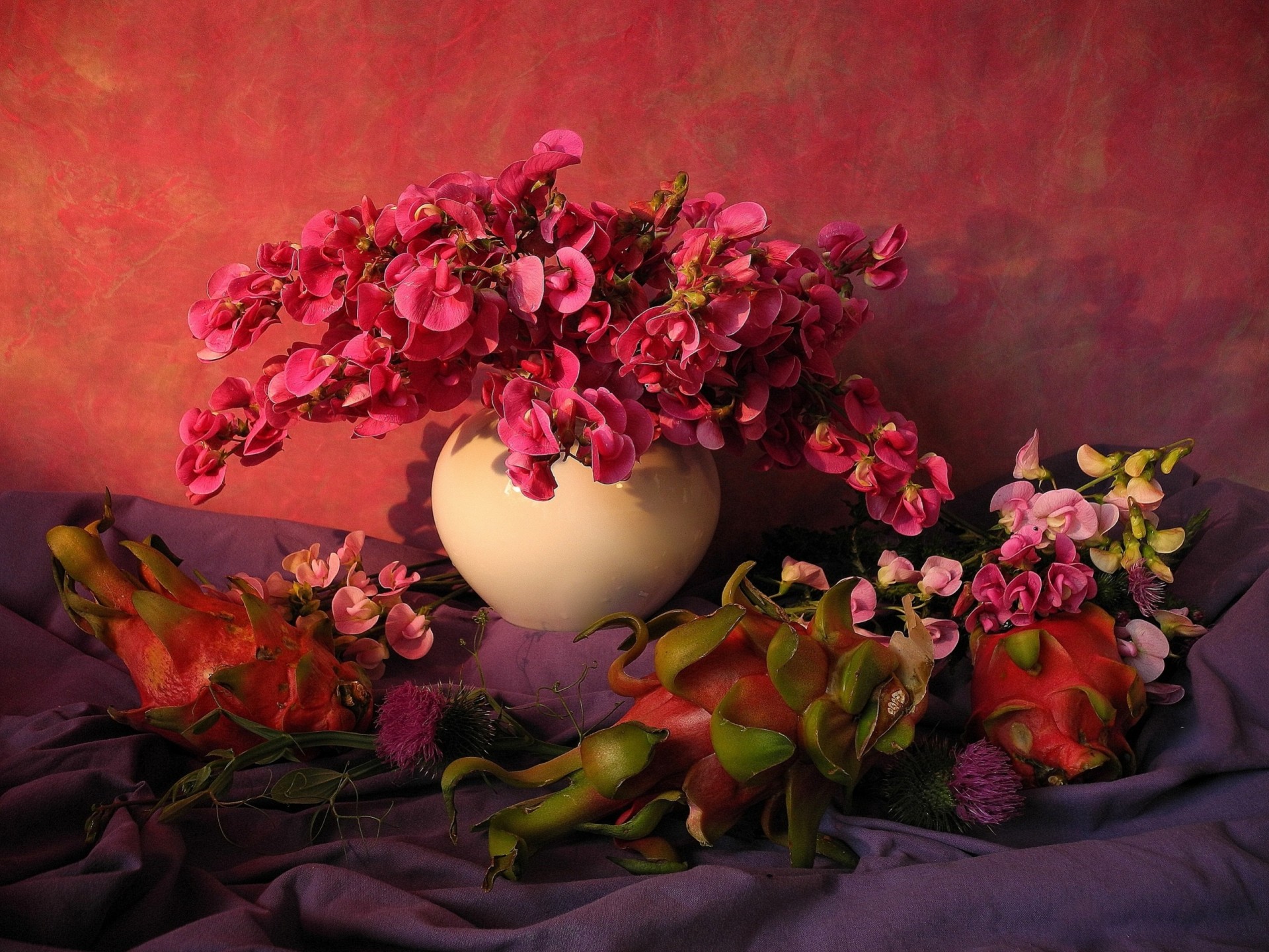 Natura morta con more e ciliegie in una ciotola bluNatura morta con More e ciliegie in una ciotola blu