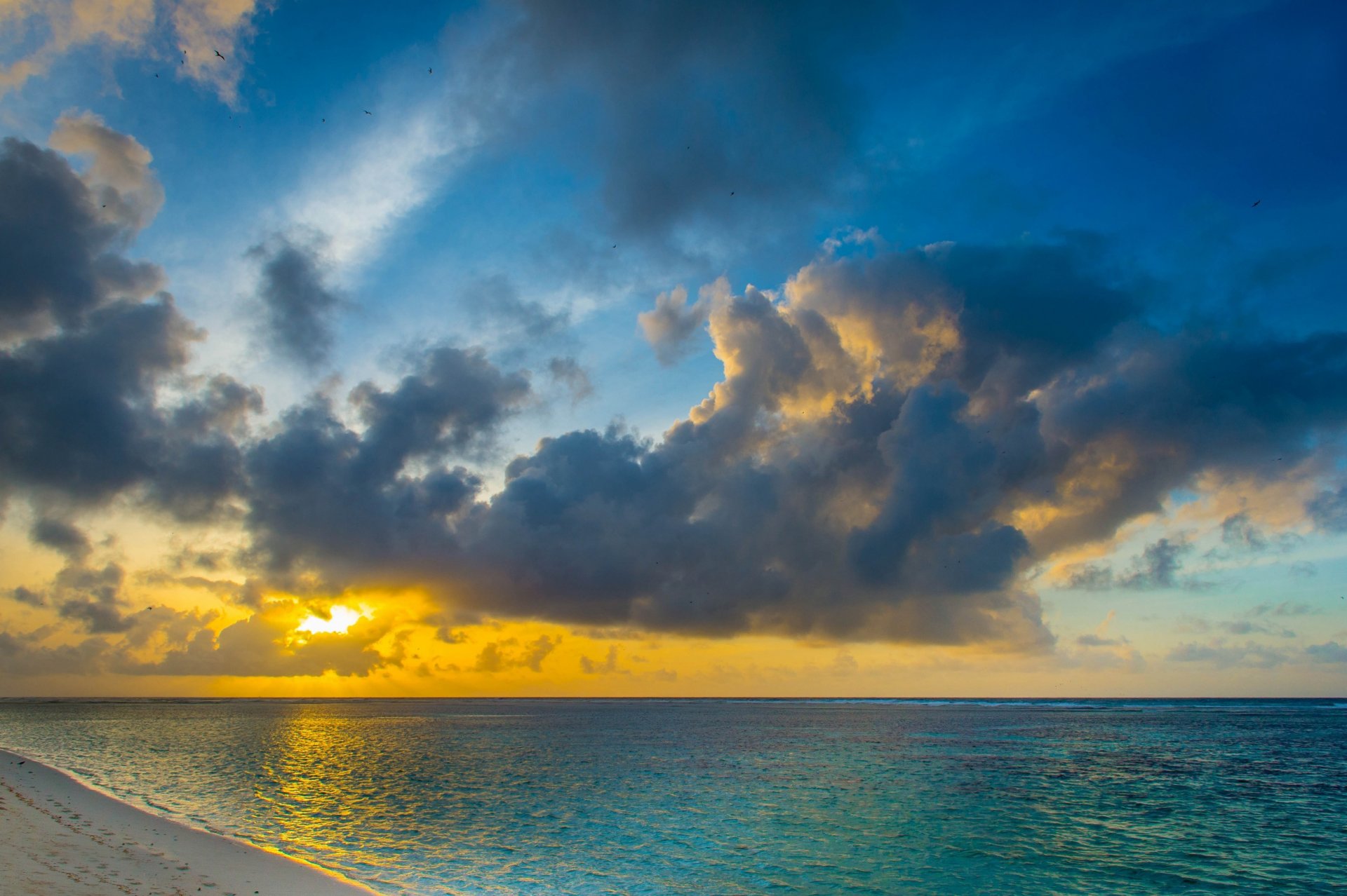 Un tramonto Ululante sull'oceano si fonde con l'orizzonte