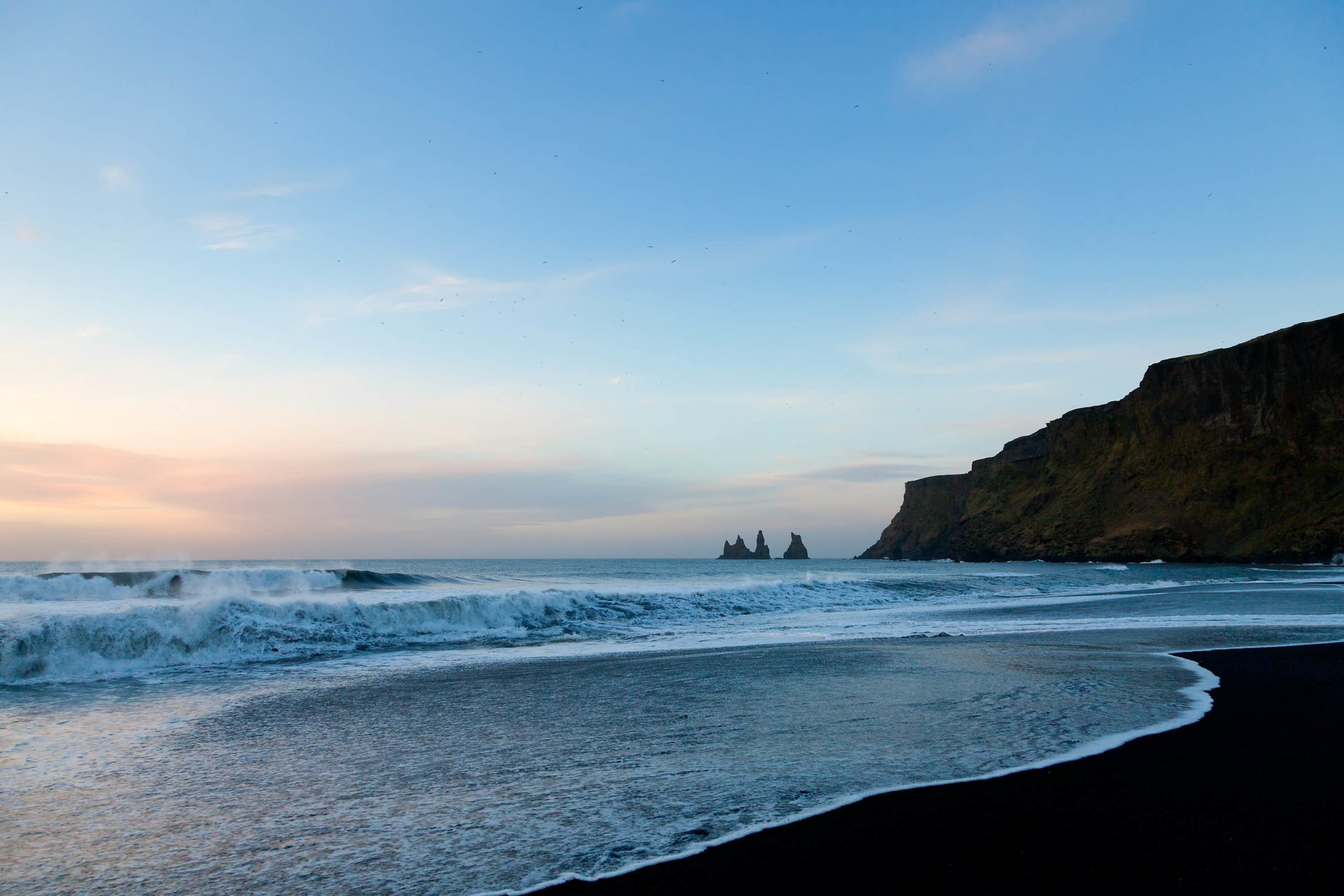 Le onde dell'oceano tramontano su una spiaggia di sabbiaLe onde dell'oceano Tramontano su una spiaggia di sabbia