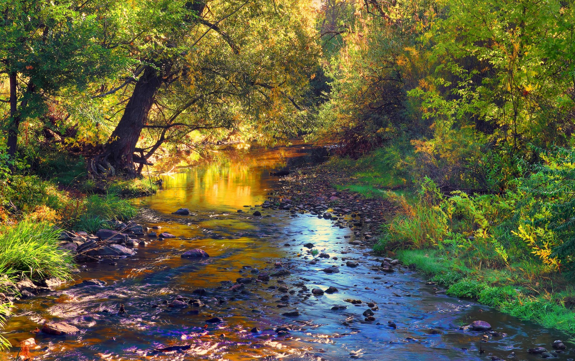 Paesaggio con fiume roccioso nella foresta