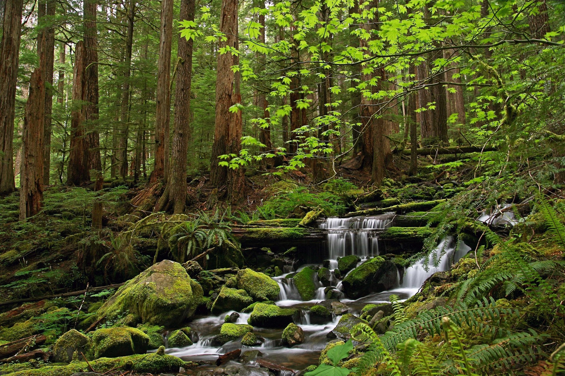 I raggi del sole scorrevano attraverso la cascata e il verde, creando l'illusione dell'Acqua Verde