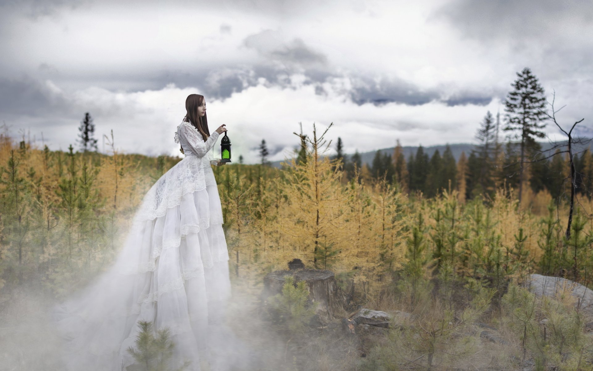 Ragazza per lampada foresta