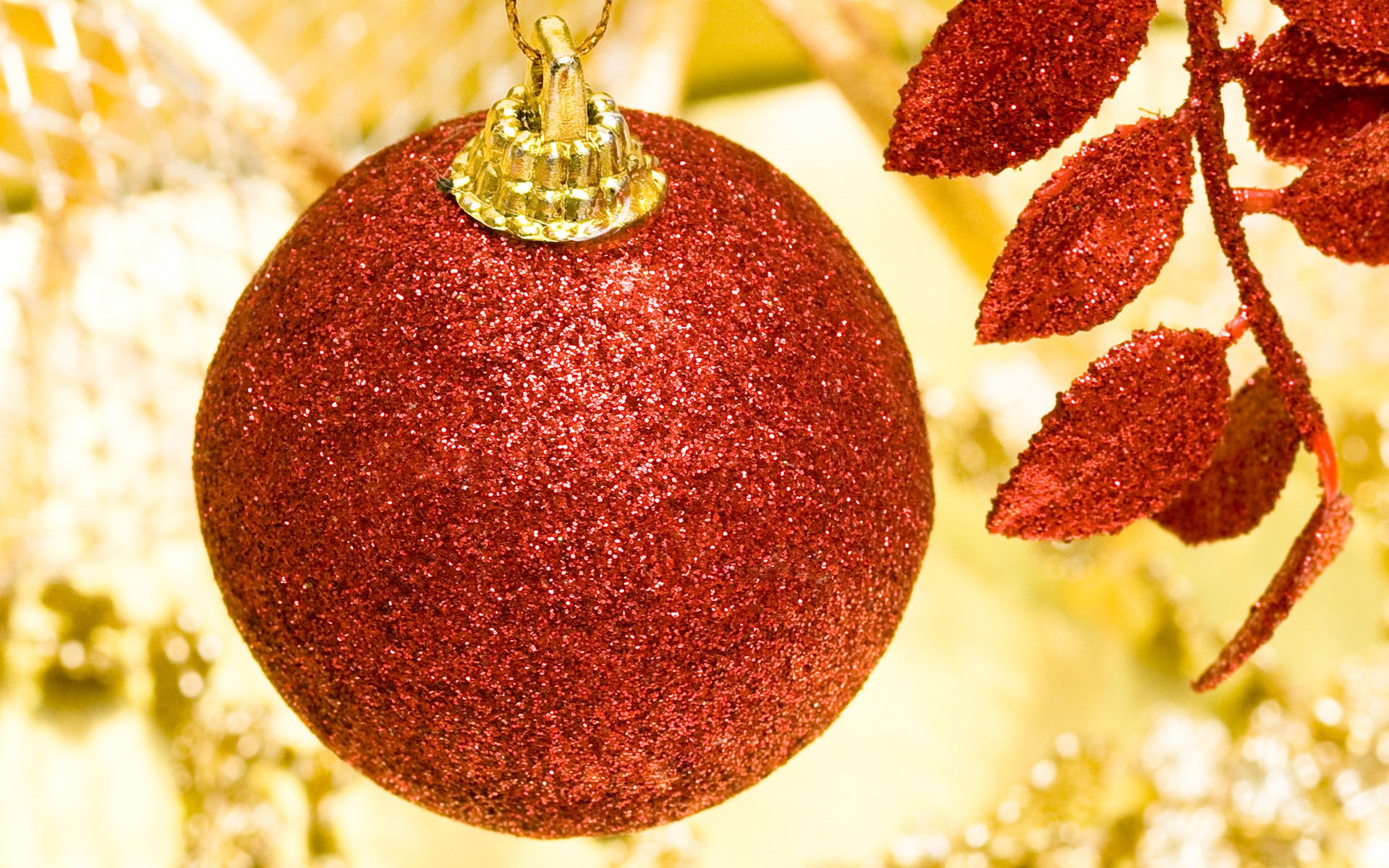 Giocattolo di Natale rosso e bianco sull'albero di Natale