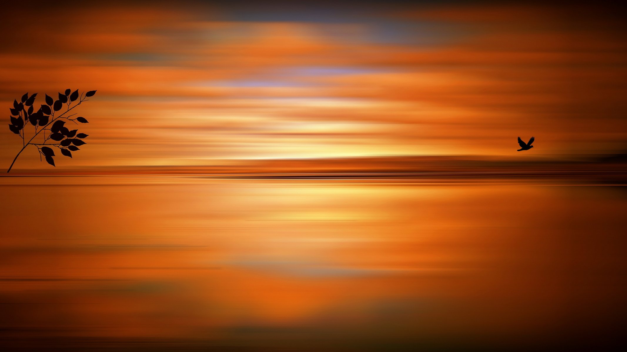 Arte di un uccello in bilico sopra un albero e una luna bluArte di un uccello in bilico sopra un albero e una luna blu