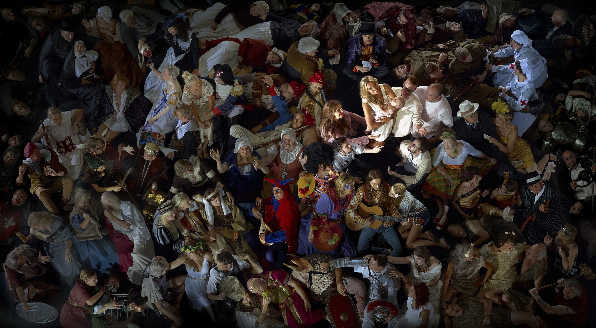 Uomo in tuta di ferro circondato da persone