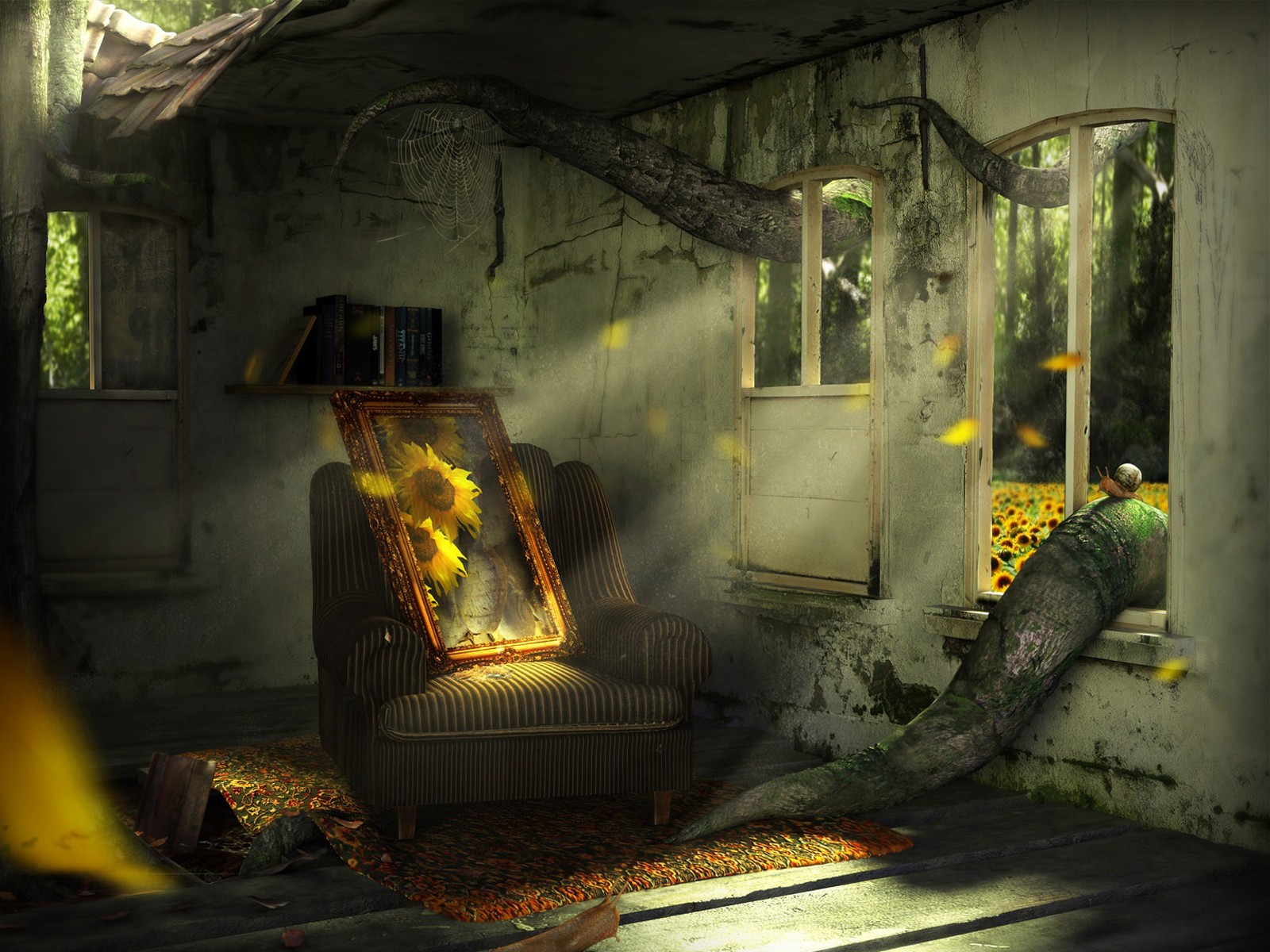 Casa abbandonata e Ragazza danzante in abito bianco