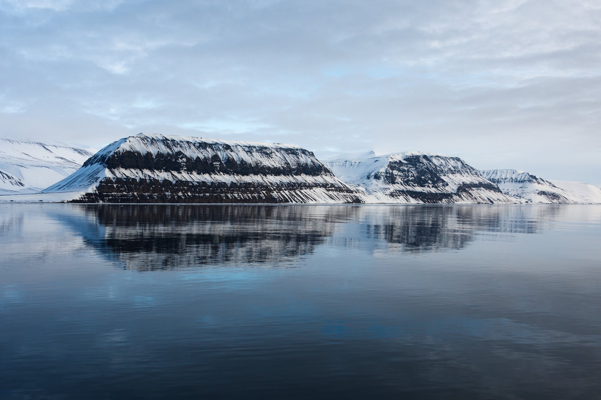 Belle montagne innevate si riflettono nell'acqua