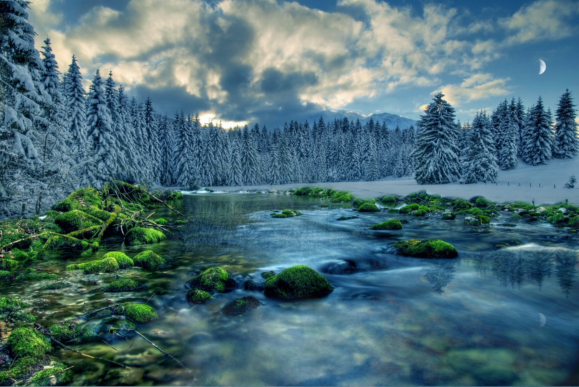 L'atmosfera romantica è la bellezza delle montagne e del fiume