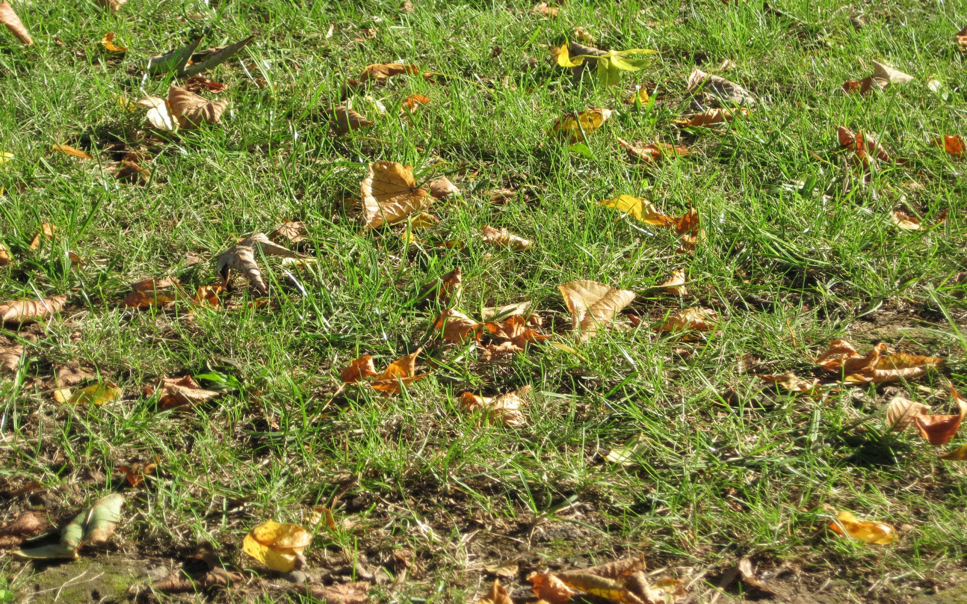 Panchine in un parco autunnale pieno di foglie cadute