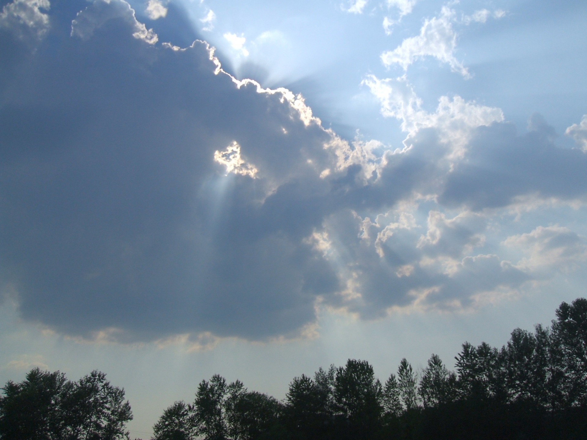 Maestose nuvole nel cielo, e la foresta verde sulle colline