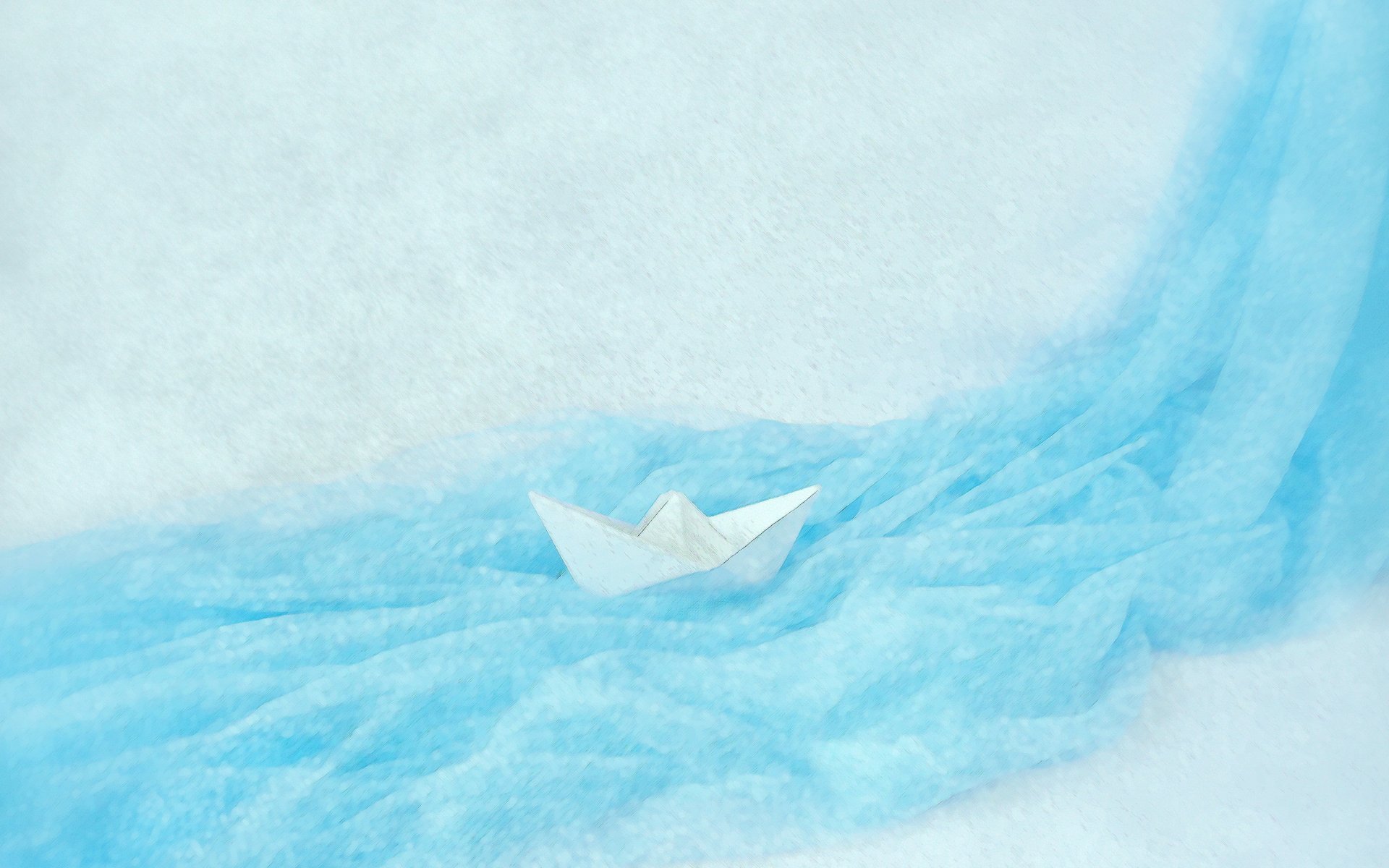 Paesaggio con Barca In mezzo al lago in scala di grigi