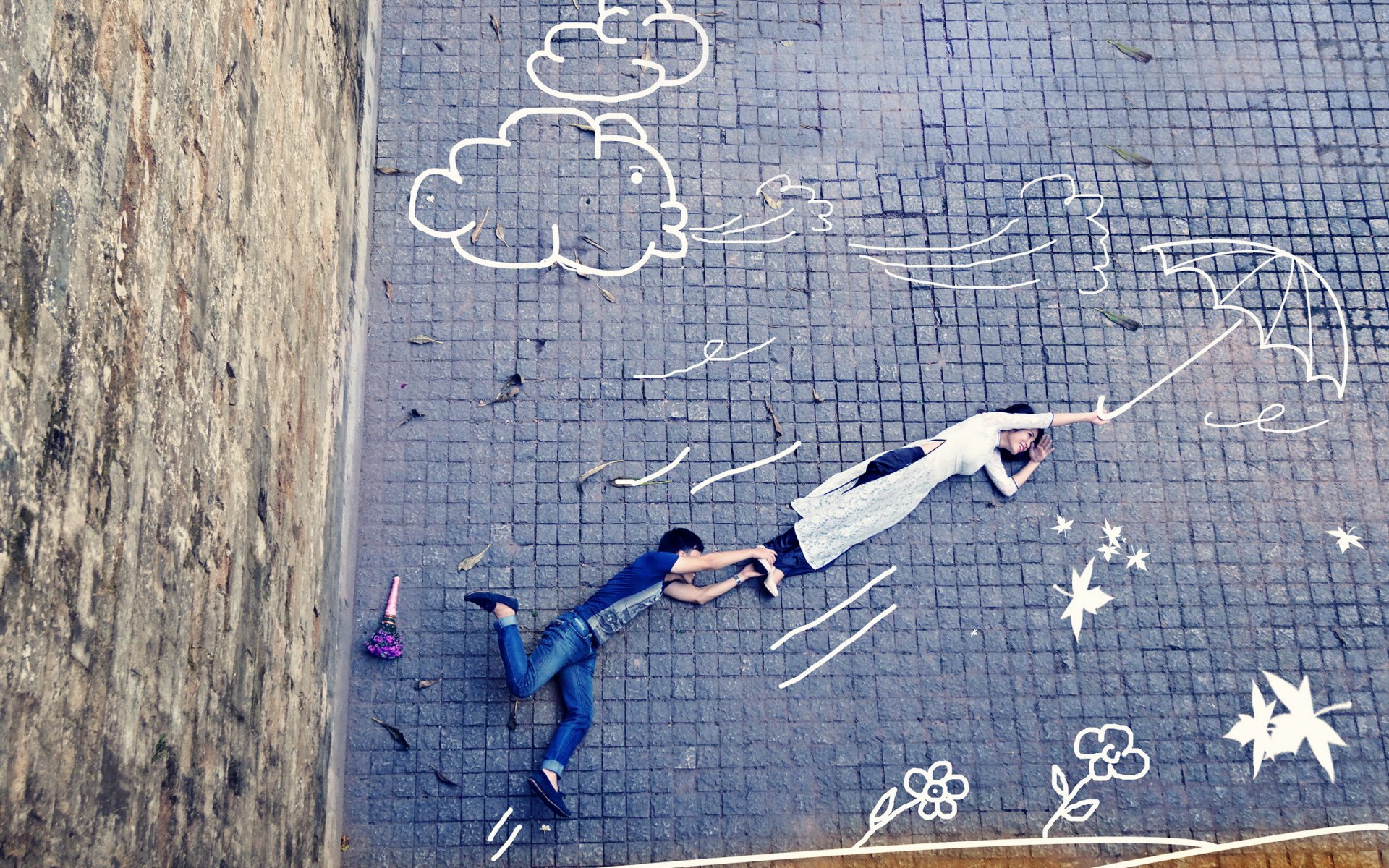 Le figure di kotorve sono disegnate sull'asfalto con un ragazzo e una ragazza
