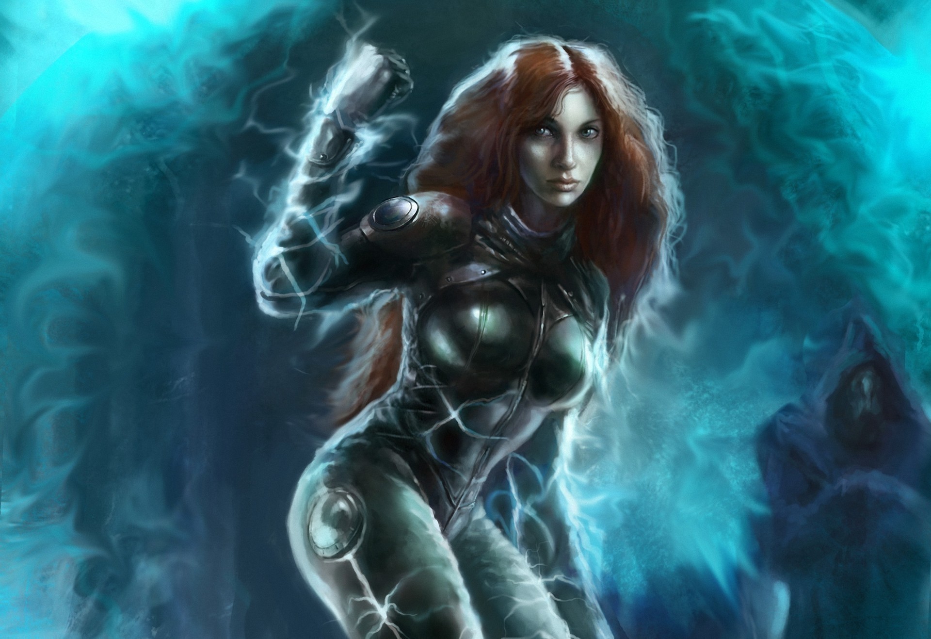 Foto di una ragazza con i capelli rossi e un vestito blu