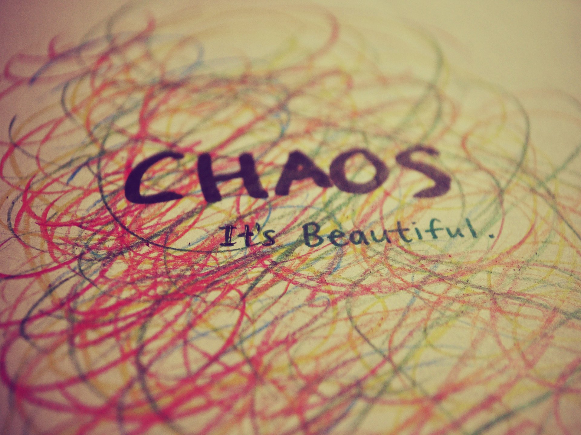 La Scritta " Chaos. It's beautiful " tra le linee colorate