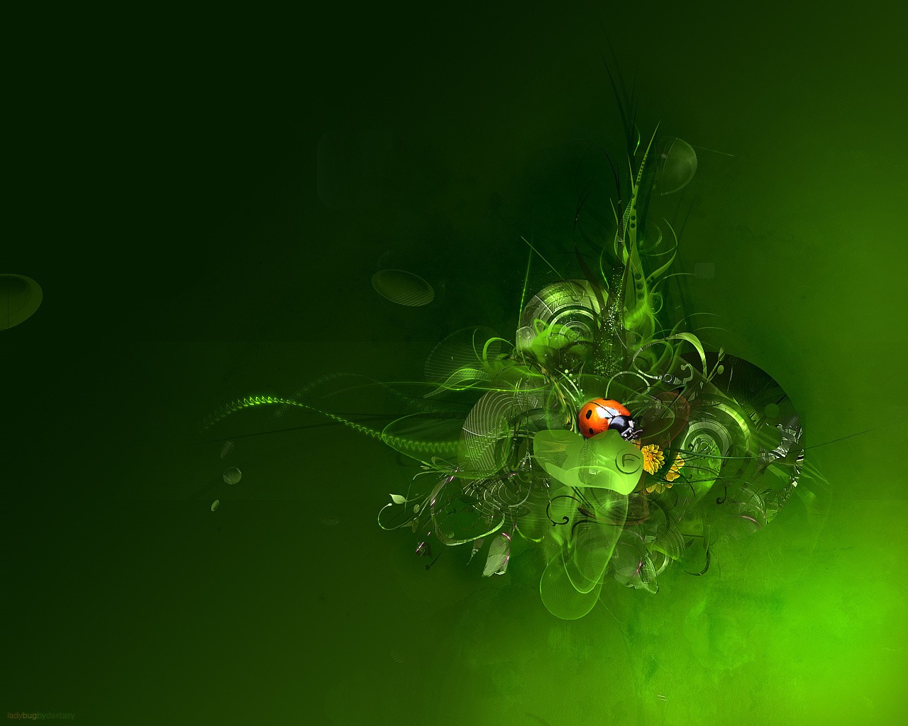 Goccia verde e coccinella rossa