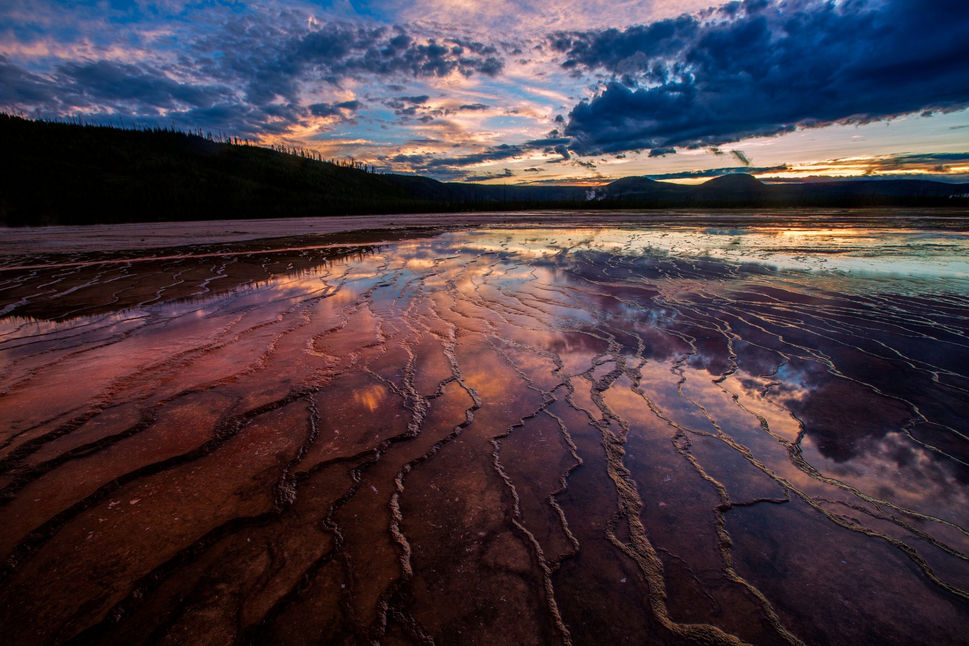 Bassa marea la sera sullo sfondo delle colline