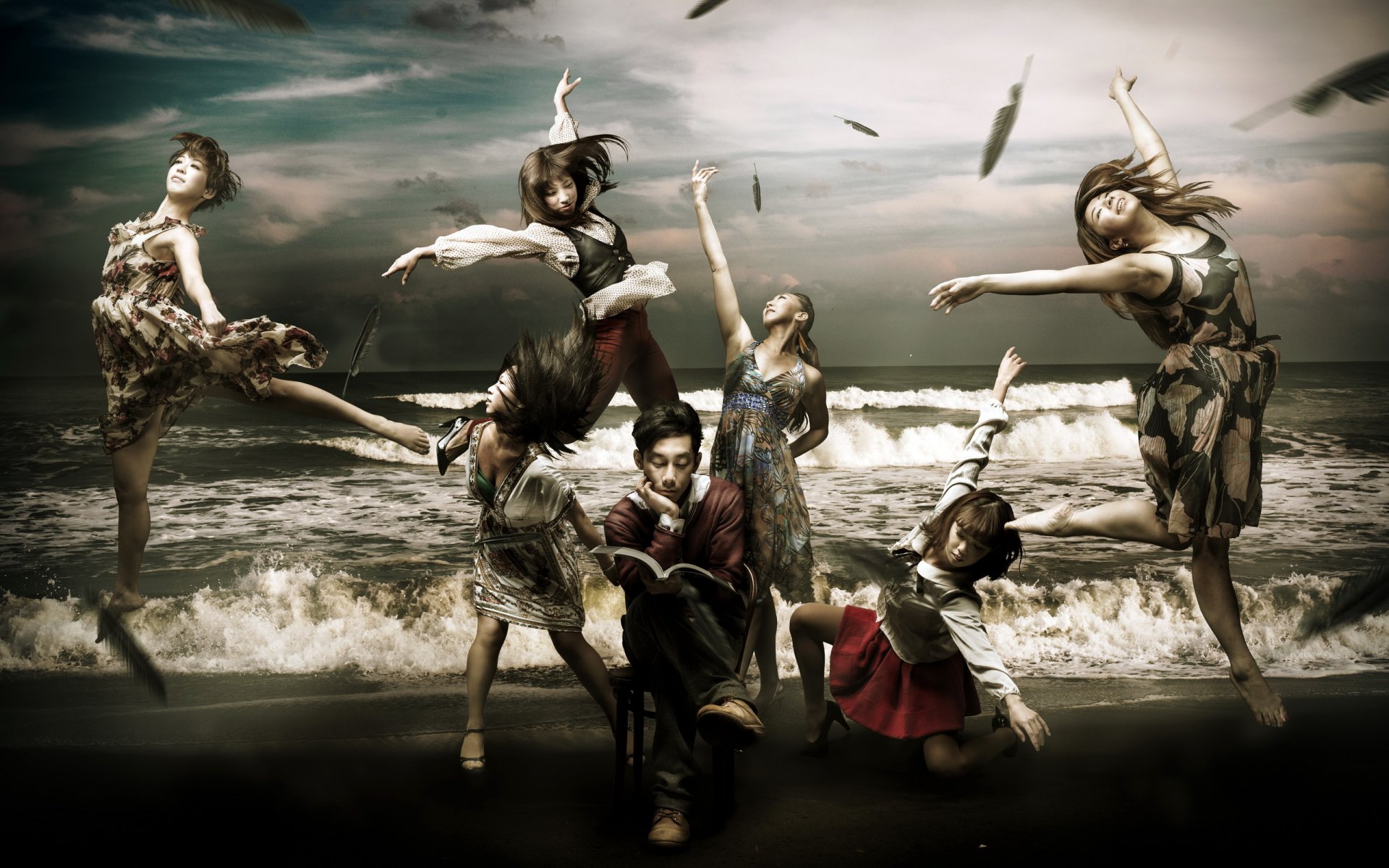 Ragazze danzanti in riva al mare