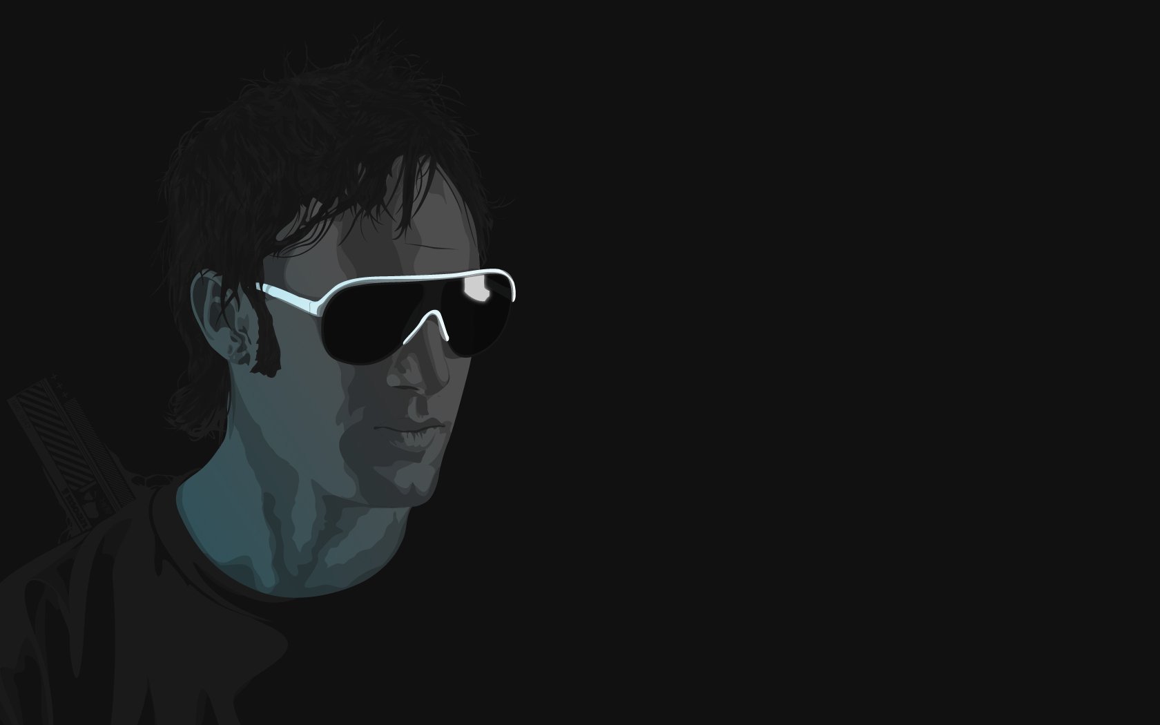 Uomo in occhiali neri su sfondo nero