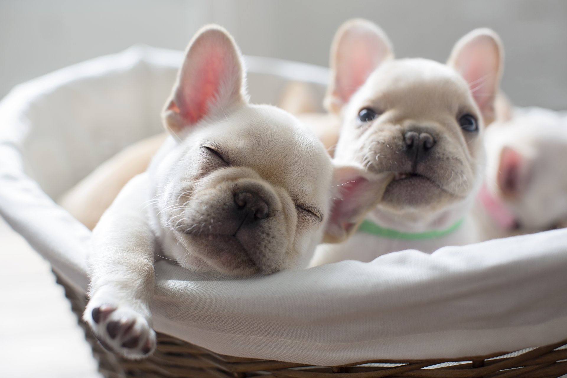 Cuccioli di terrier nella borsa di Louis Vuiton