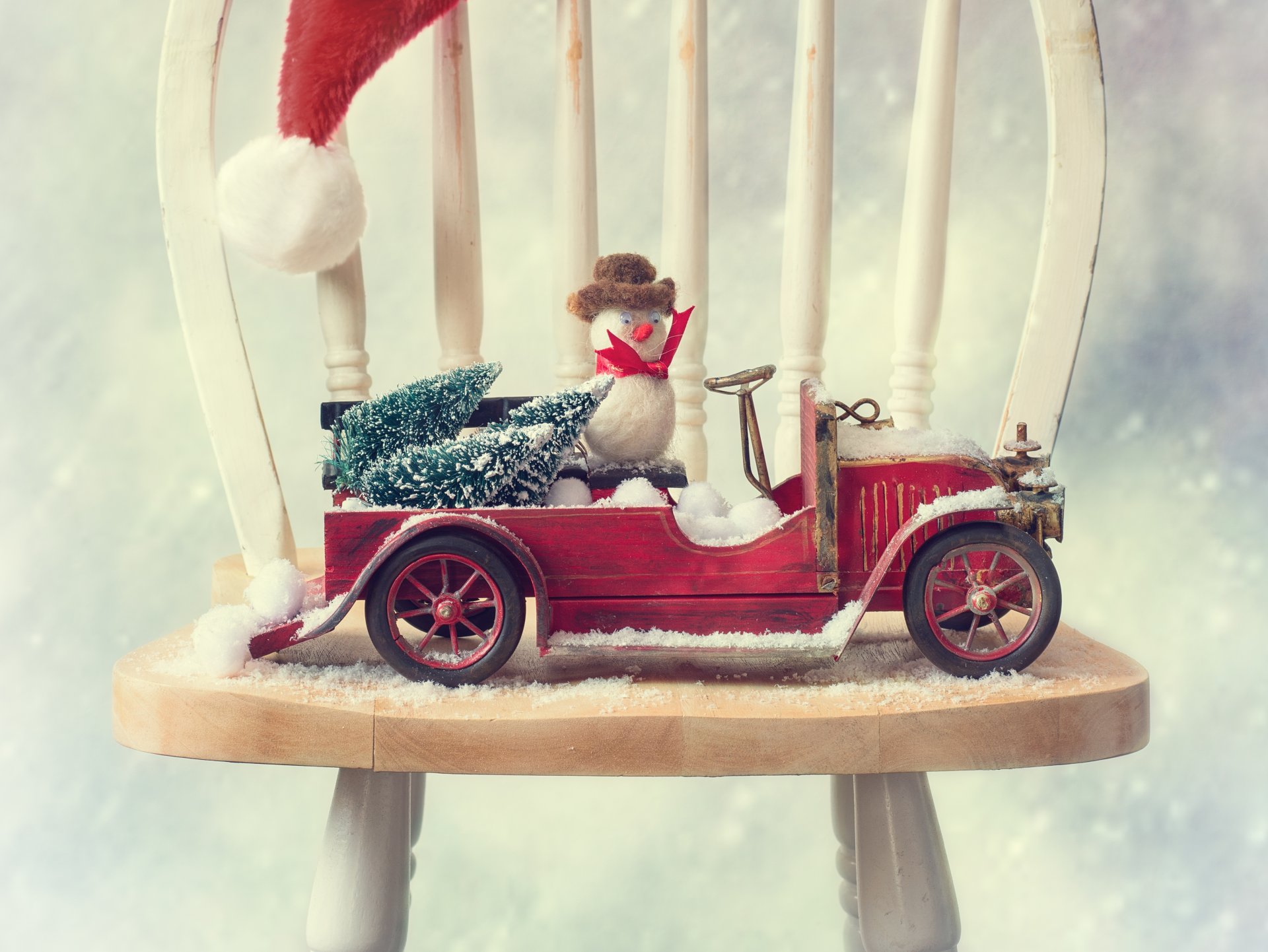Giocattoli di Natale e un bellissimo pupazzo di neve