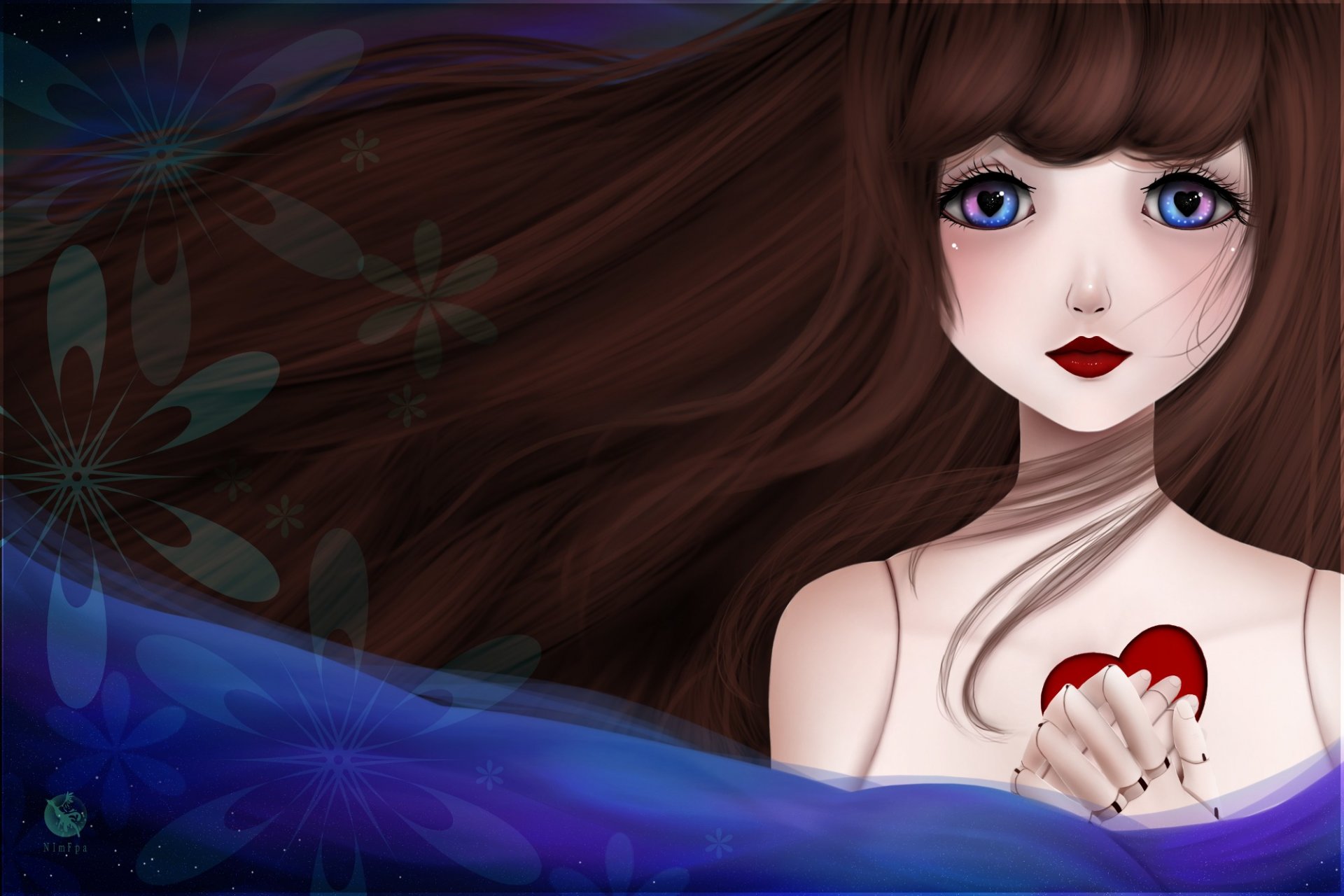 Una ragazza nell'acqua che tiene un cuore insanguinato