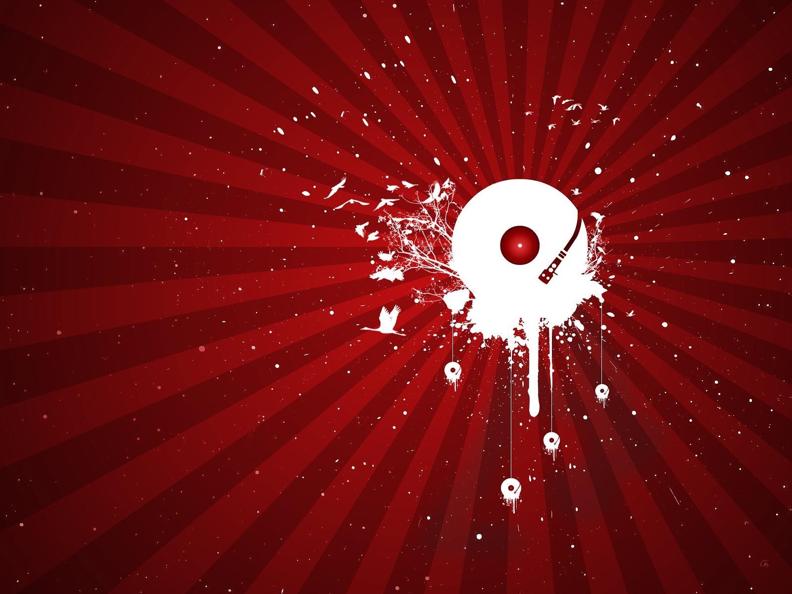 Disco in vinile. Colore di sfondo rosso e bianco