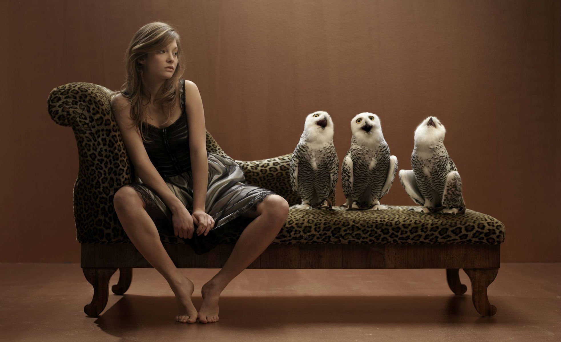Vista di Victoria Vishnevskaya seduta sul divano ritratto fotografico