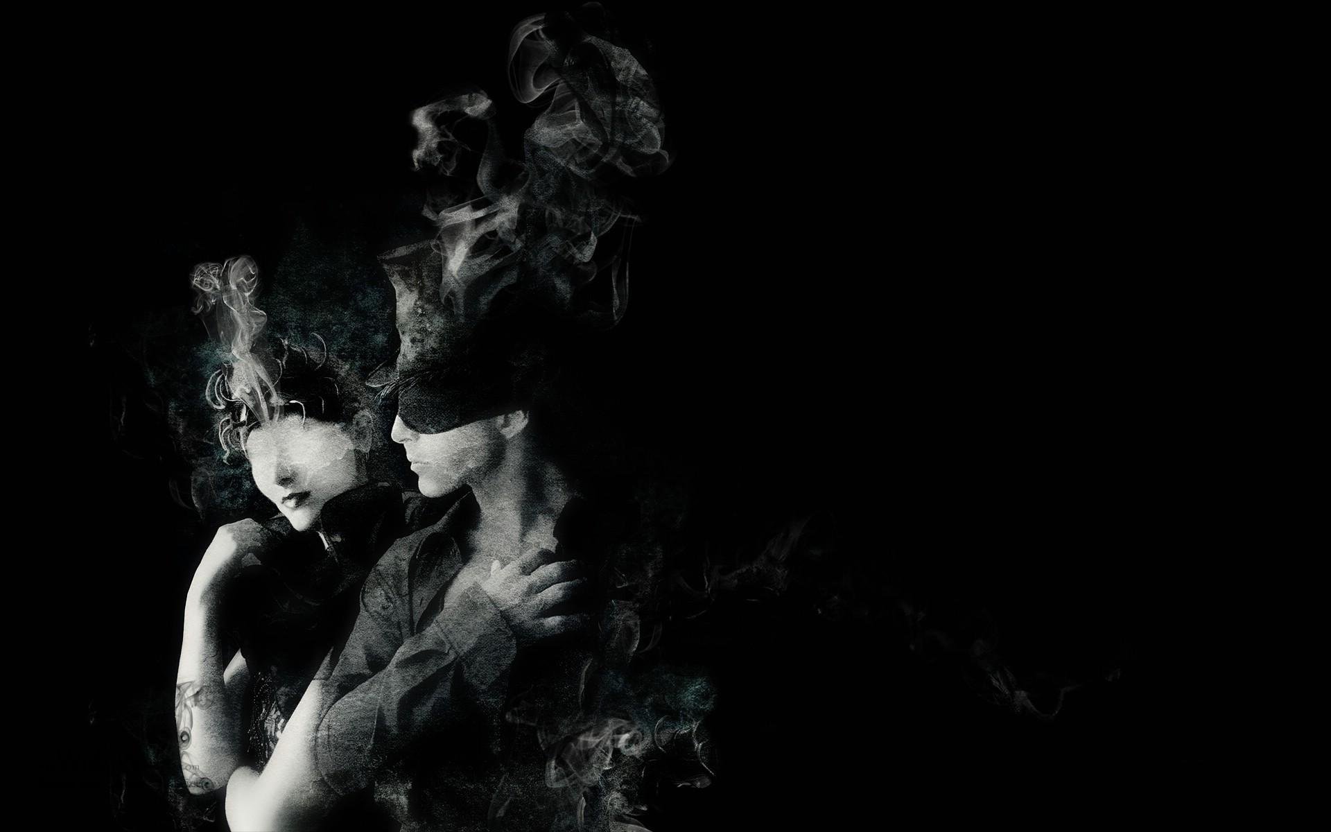 Immagine su sfondo nero raffigurante due ragazze mascherate