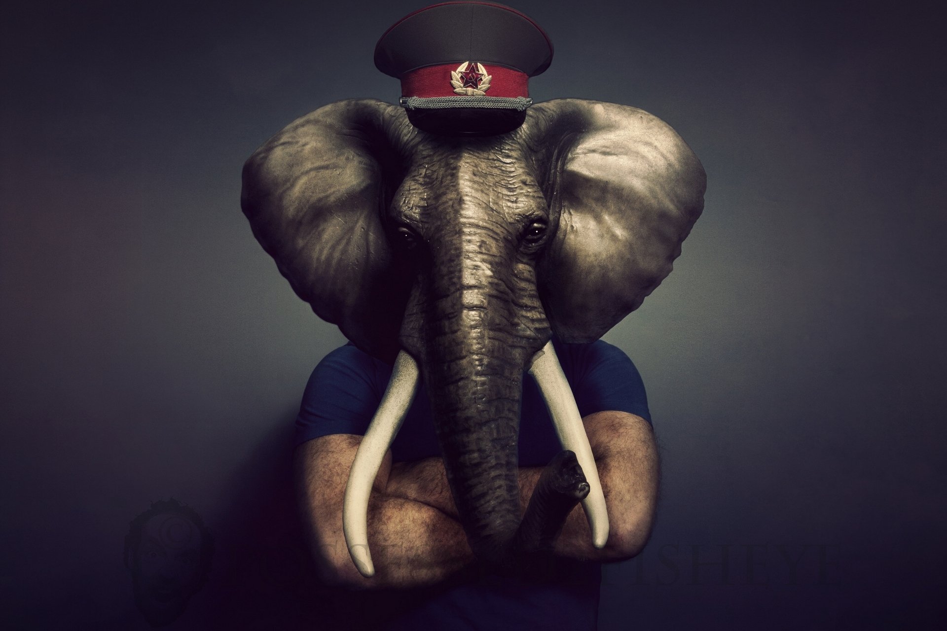 Elefante e giraffa in un abbeveratoio di notte in Africa