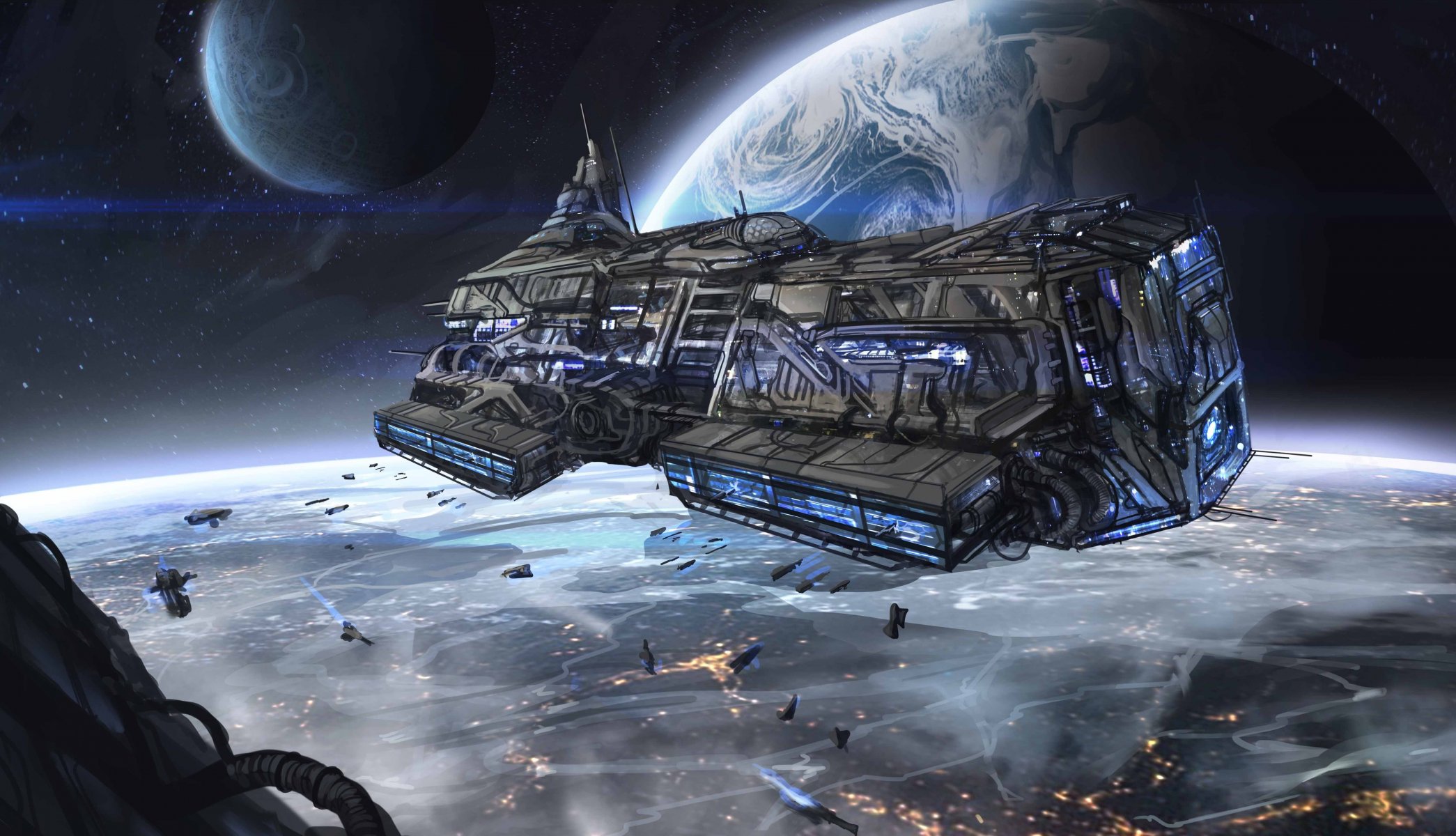 Attracco della navetta e della ISS sullo sfondo delle Nuvole dell'atmosfera terrestre e dello spazio nero