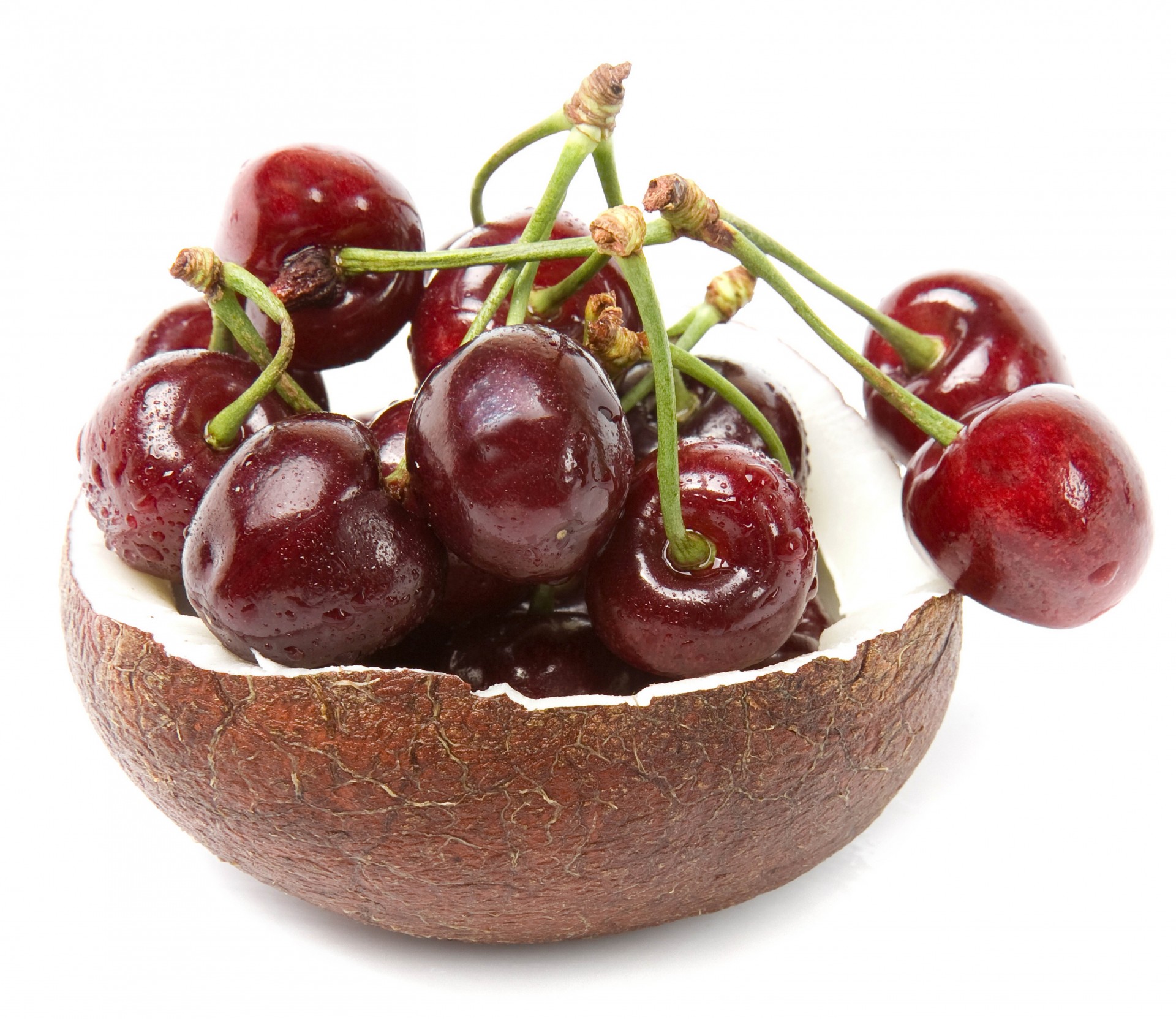 Ciliegie mature in mezzo cocco
