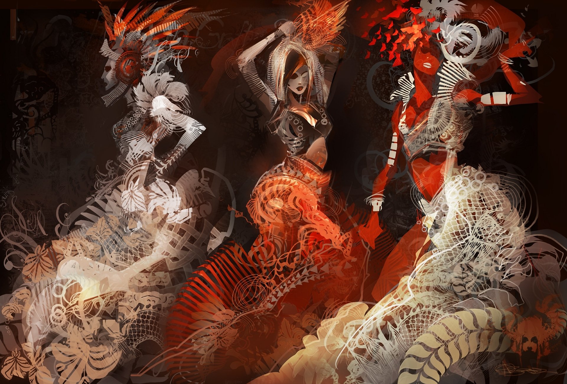 Art of Elf guy accompagnato da bestie a forma di tigre bianca e lupo nero con gli occhi rossi