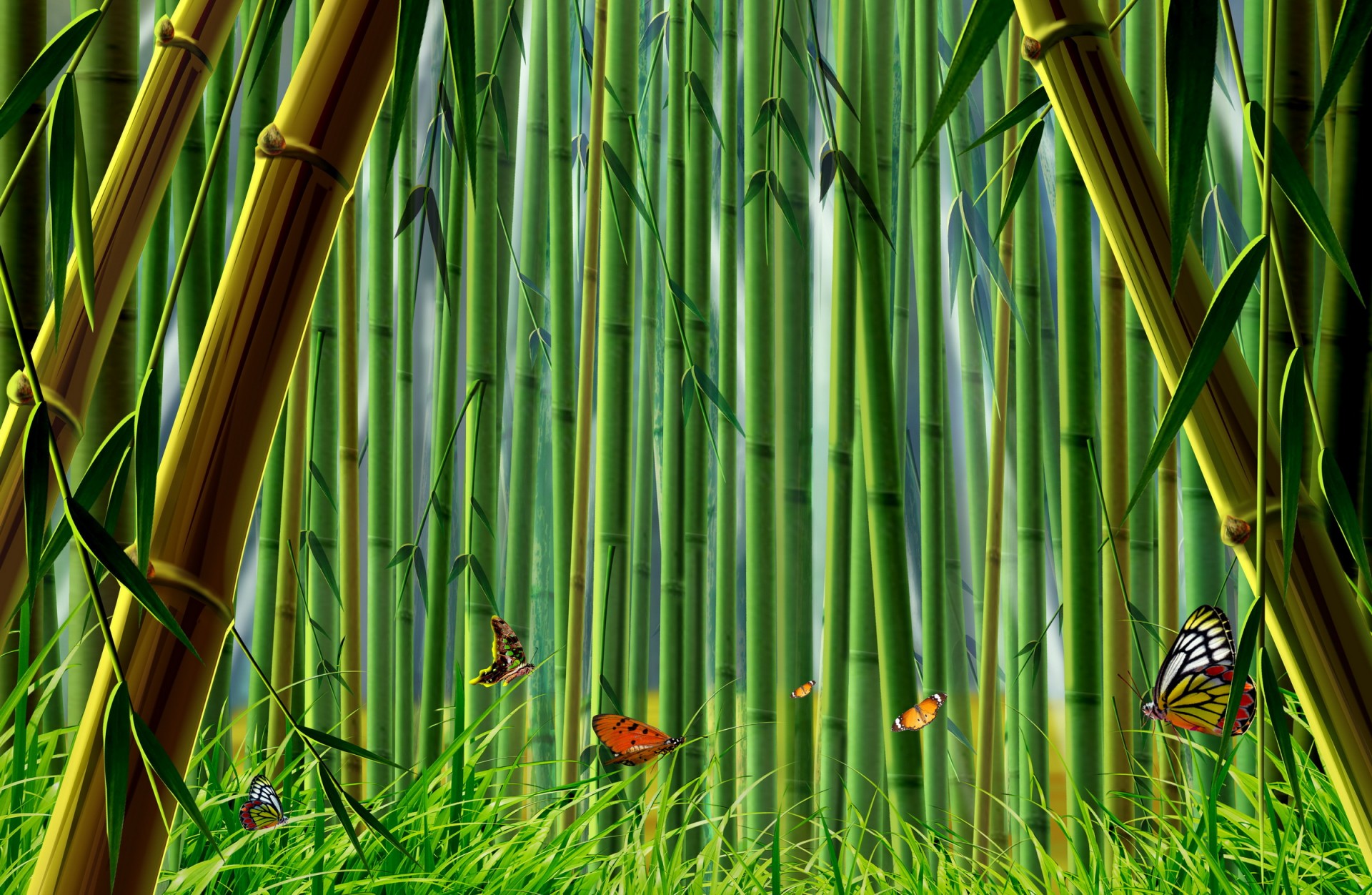 Erba e farfalle in bambù