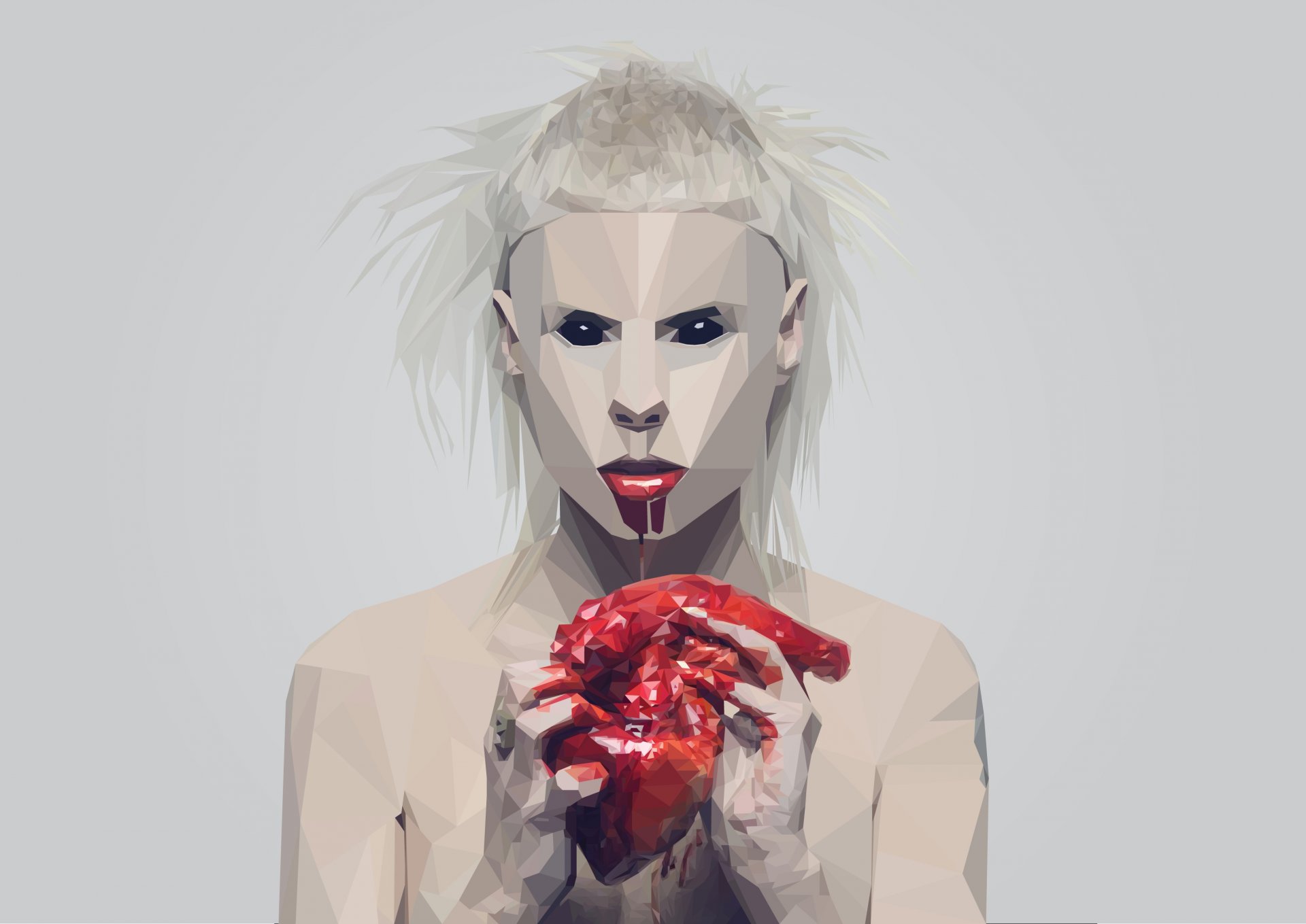 Disegnata a mano stilizzata bionda mangia cuore sanguinante