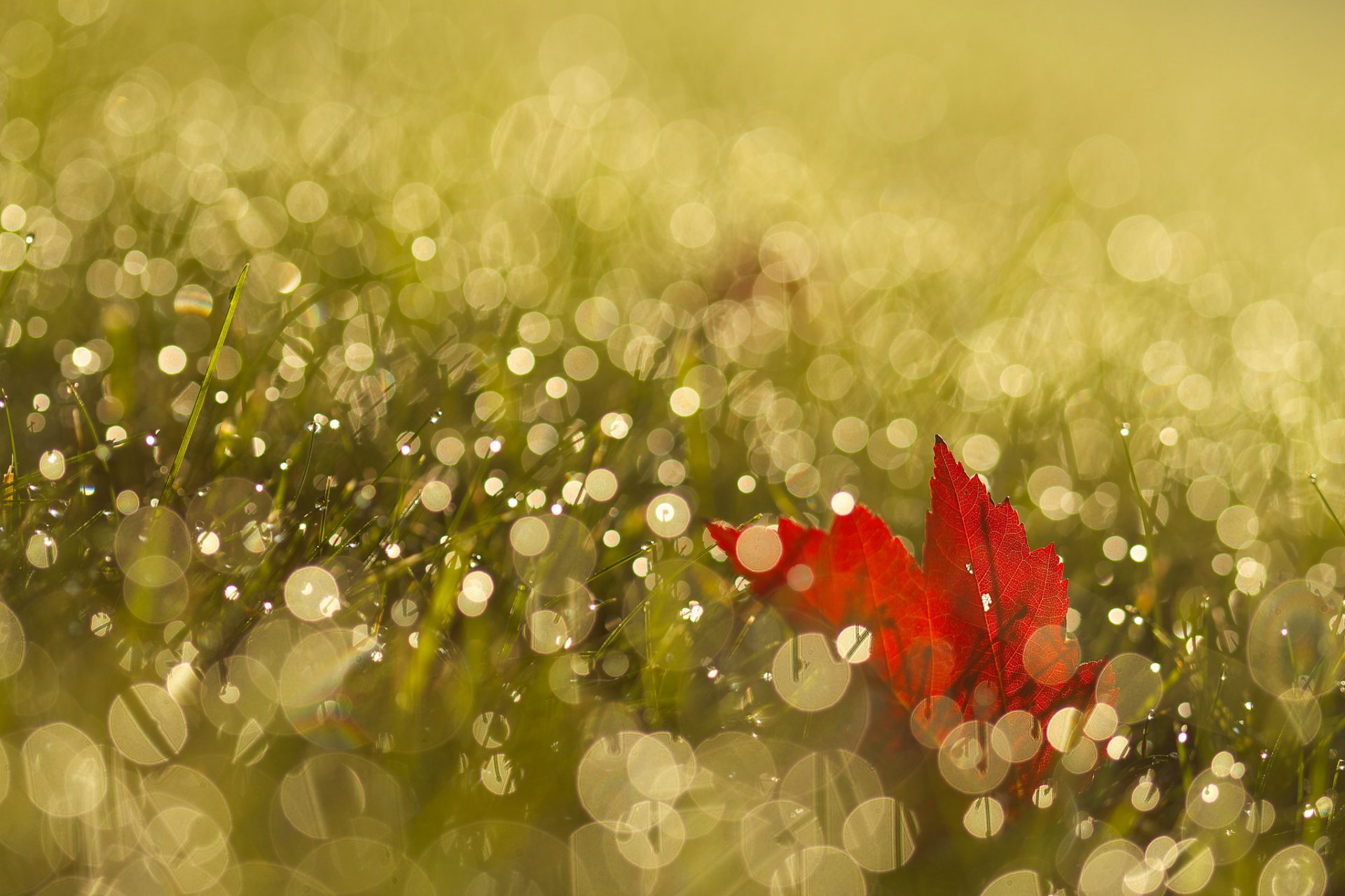 Foglia d'acero rossa in rugiada