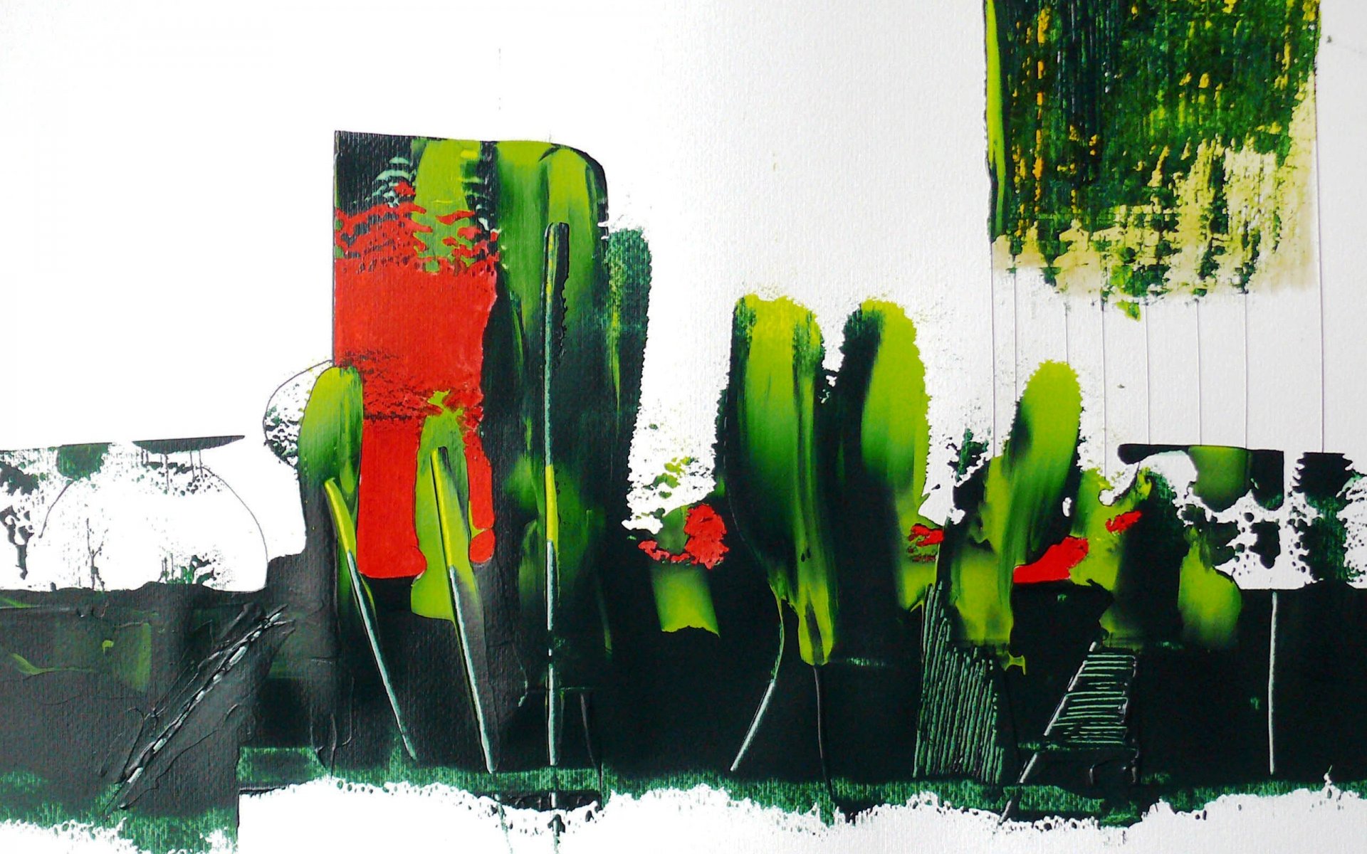 Sfondo astratto e forme rosse e verdi di diverse forme