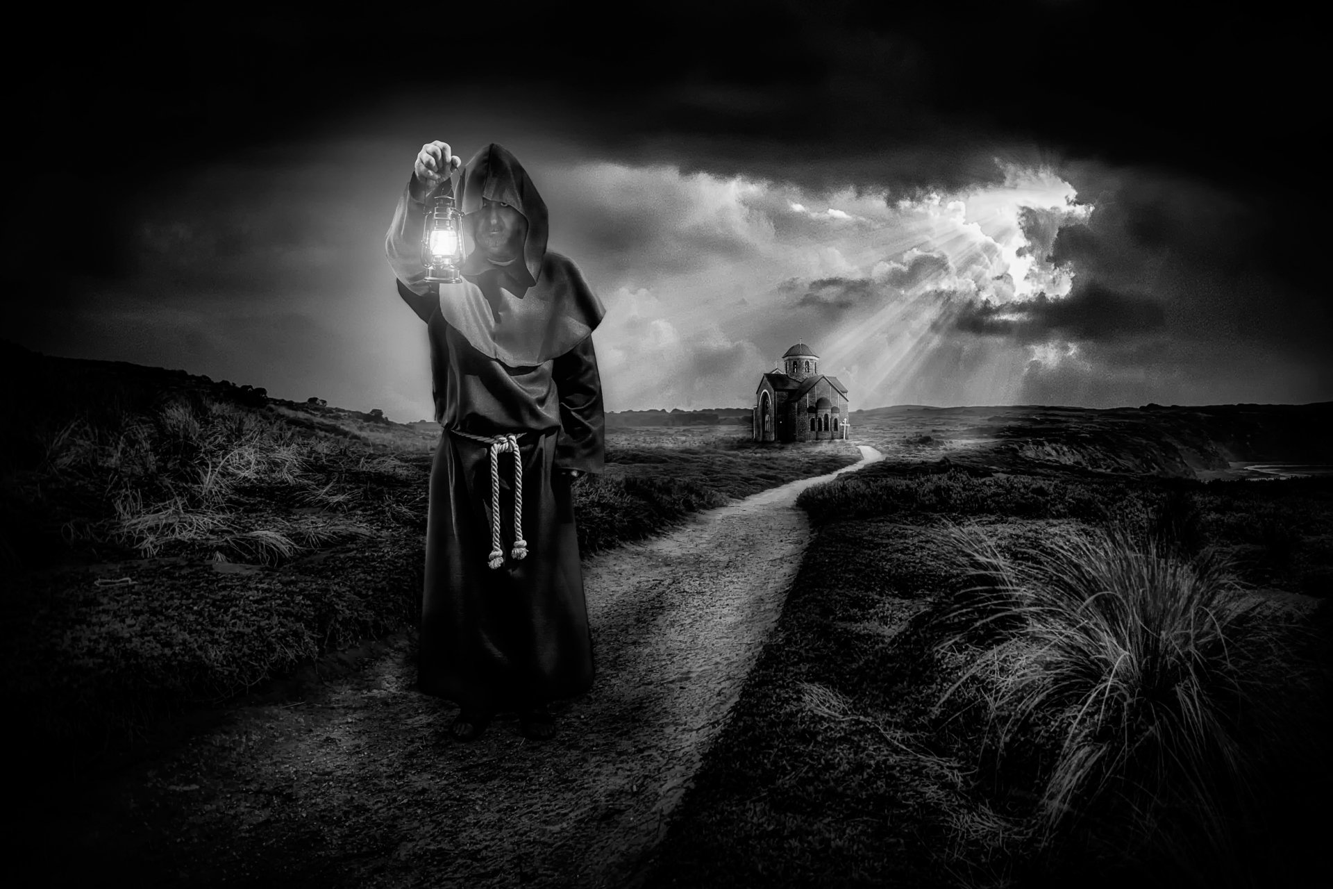 Foto in bianco e nero. persona. monaco